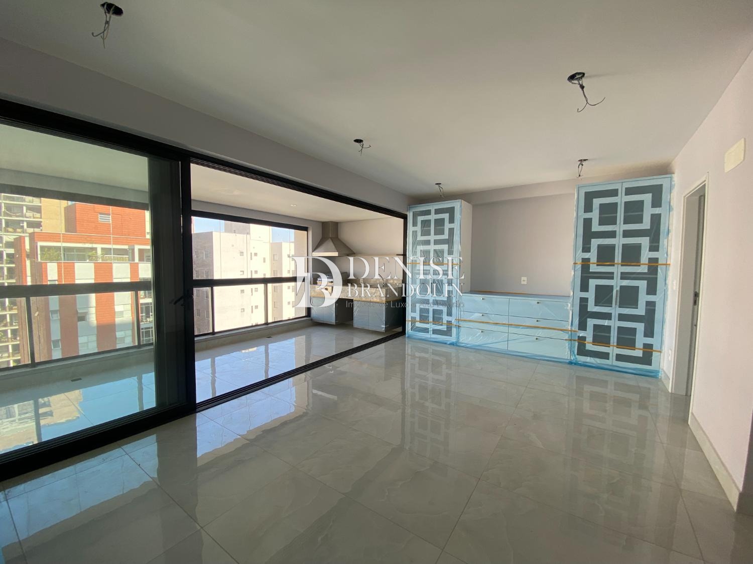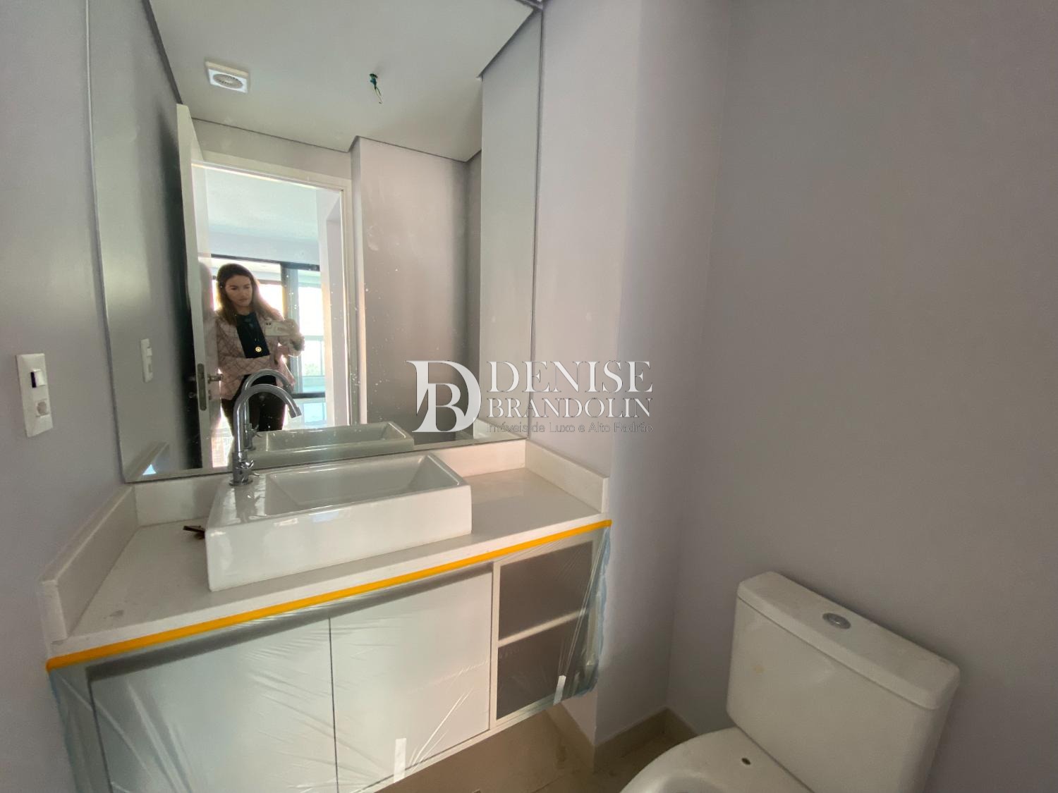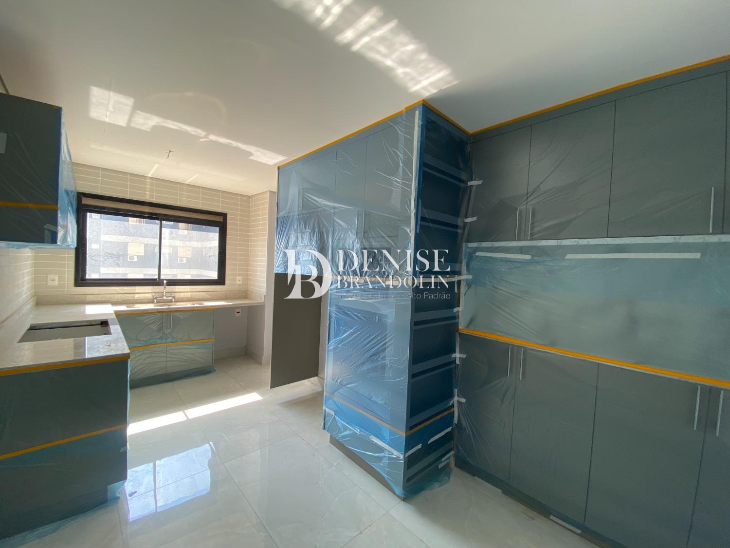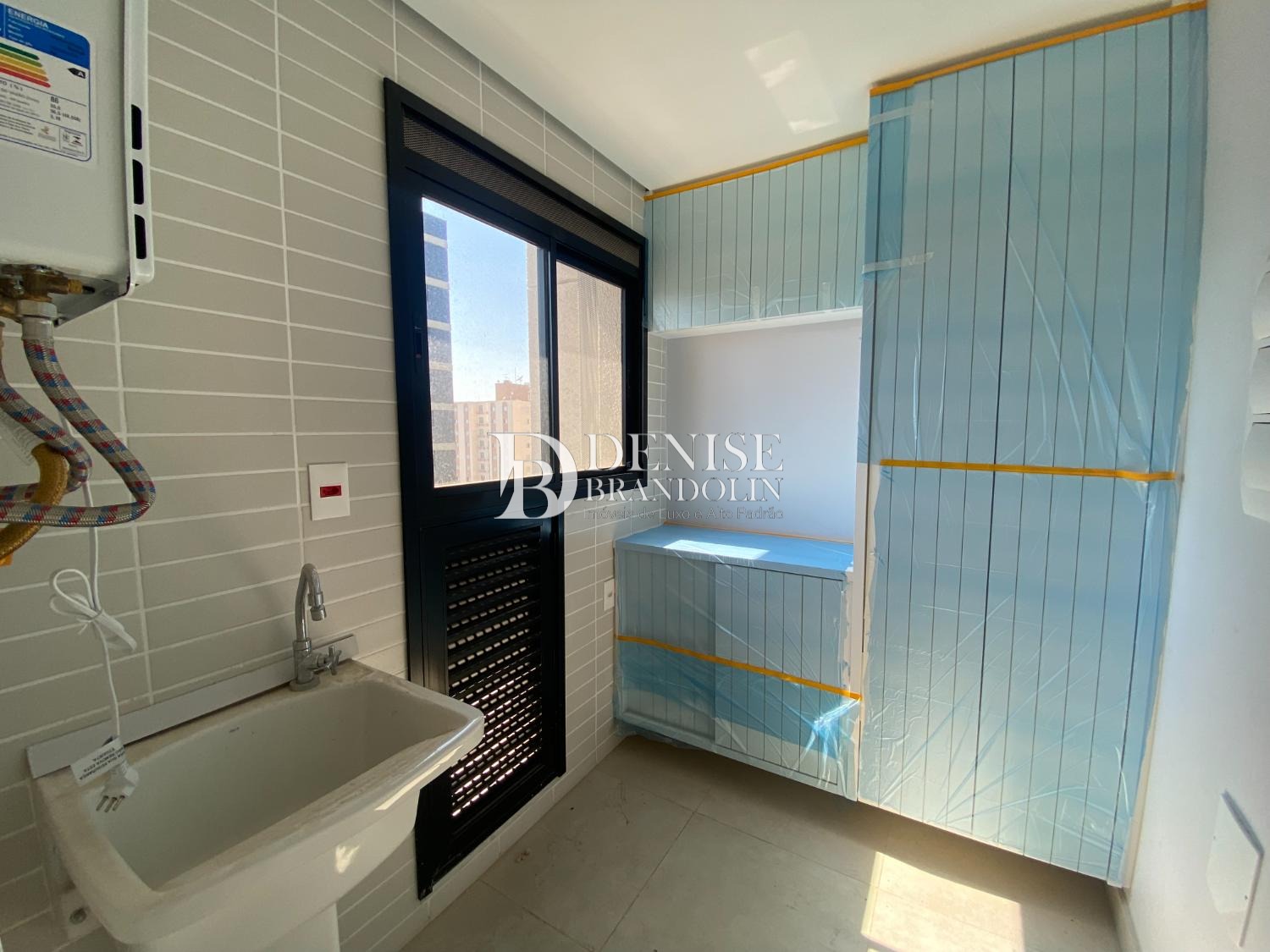 129 m², todo planejado (área de serviço, banheiros, sala, cozinha, suítes). Ampla sala de estar e jantar integradas à varanda gourmet.
