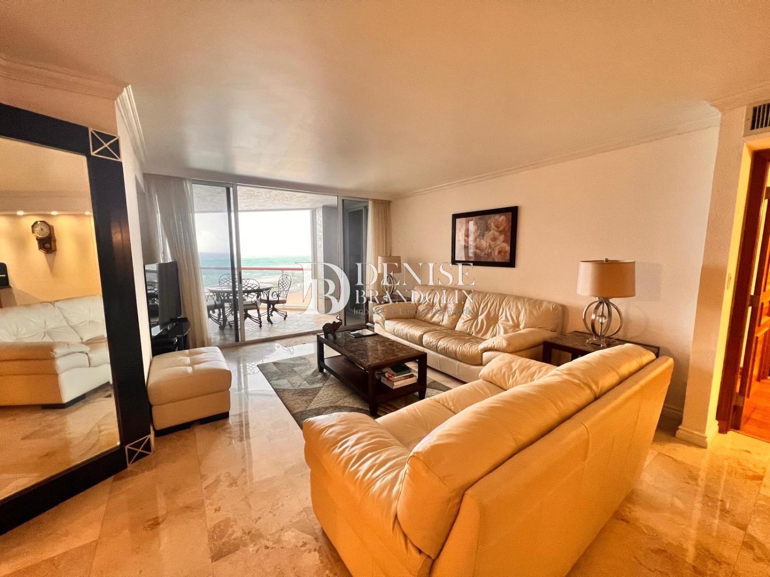 Belíssimo apartamento, pé na areia, rico em planejados. Living para vários ambientes com vista para o mar, cozinha planejada, 2 suítes sendo a máster com banheira de hidromassagem. 1 vaga de garagem.