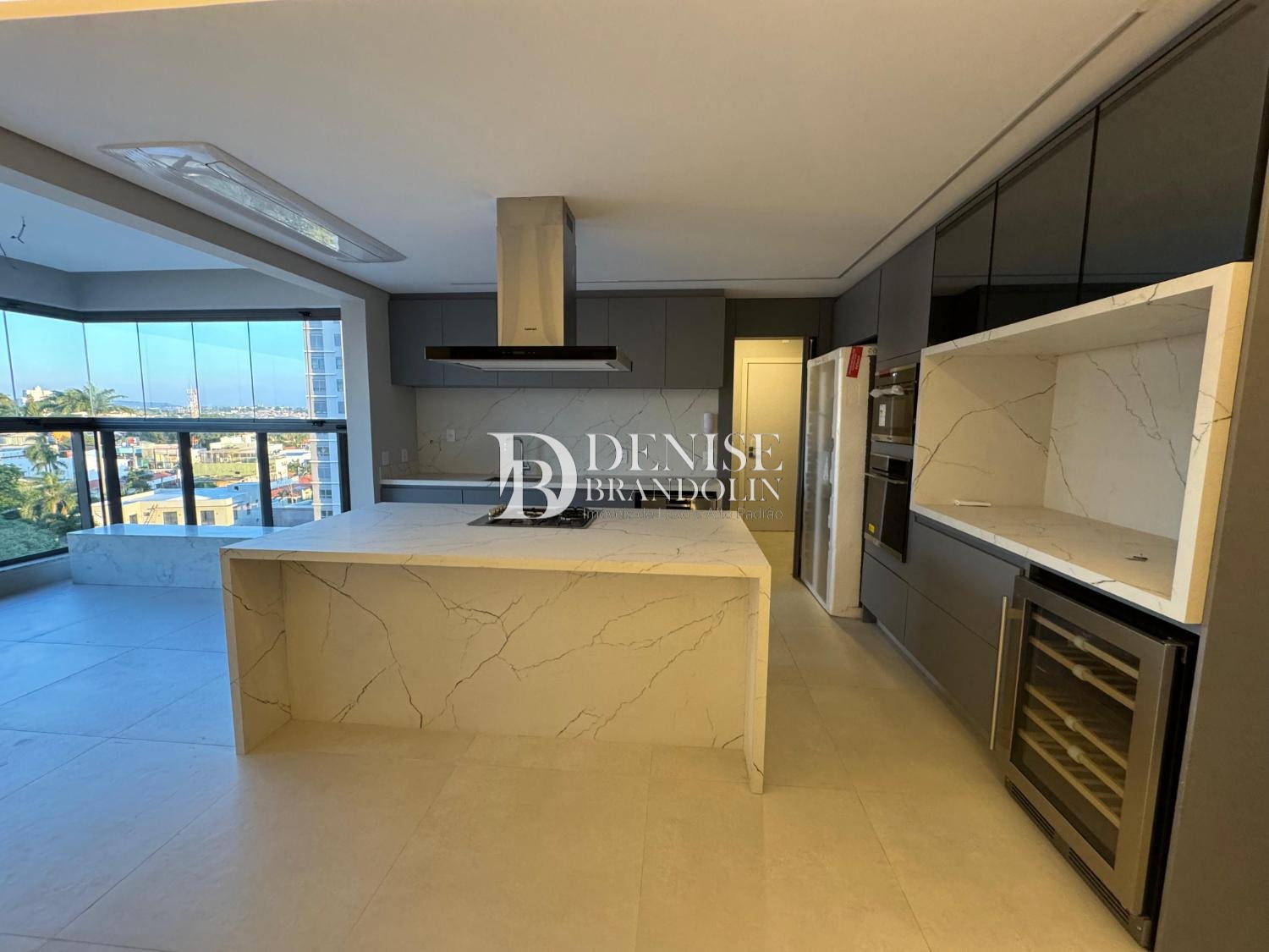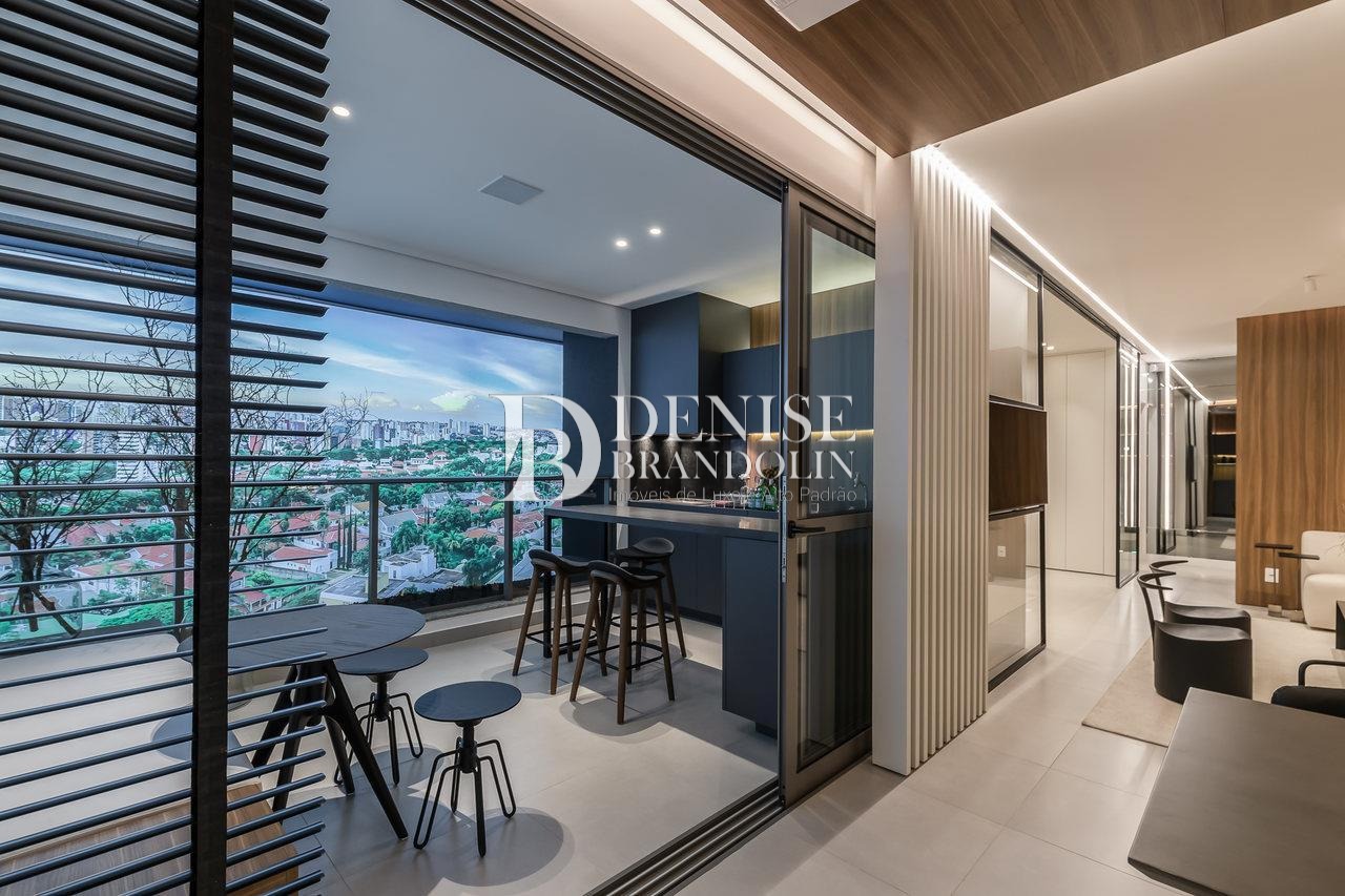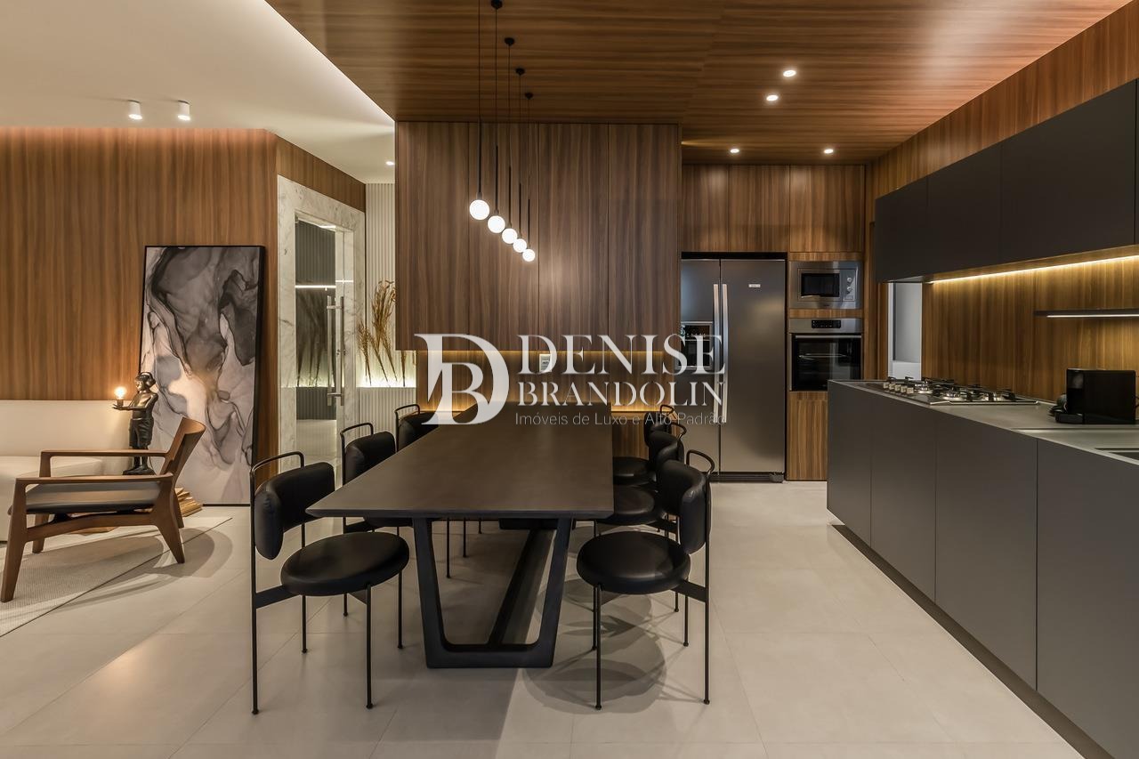 Living para 2 ambientes, cozinha planejada, geladeira, cooktop, forno elétrico, coifa, adega...