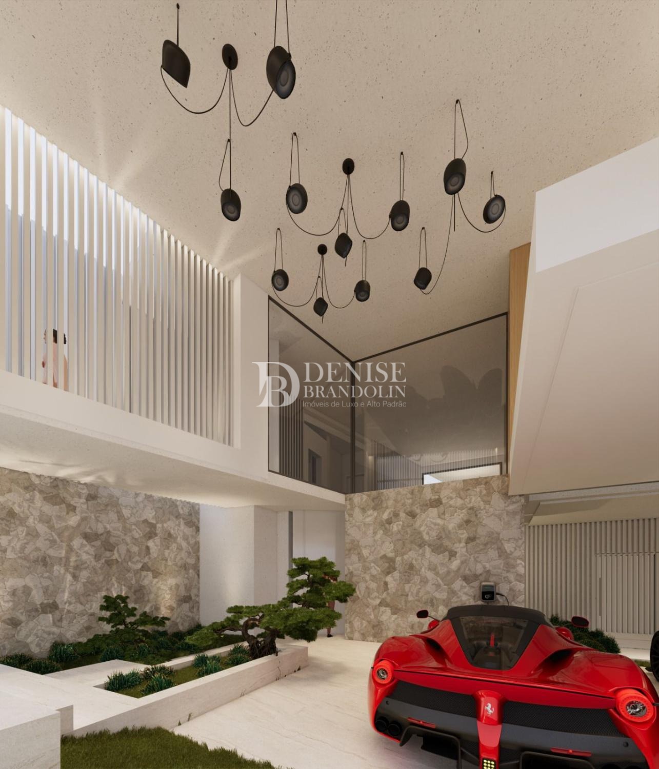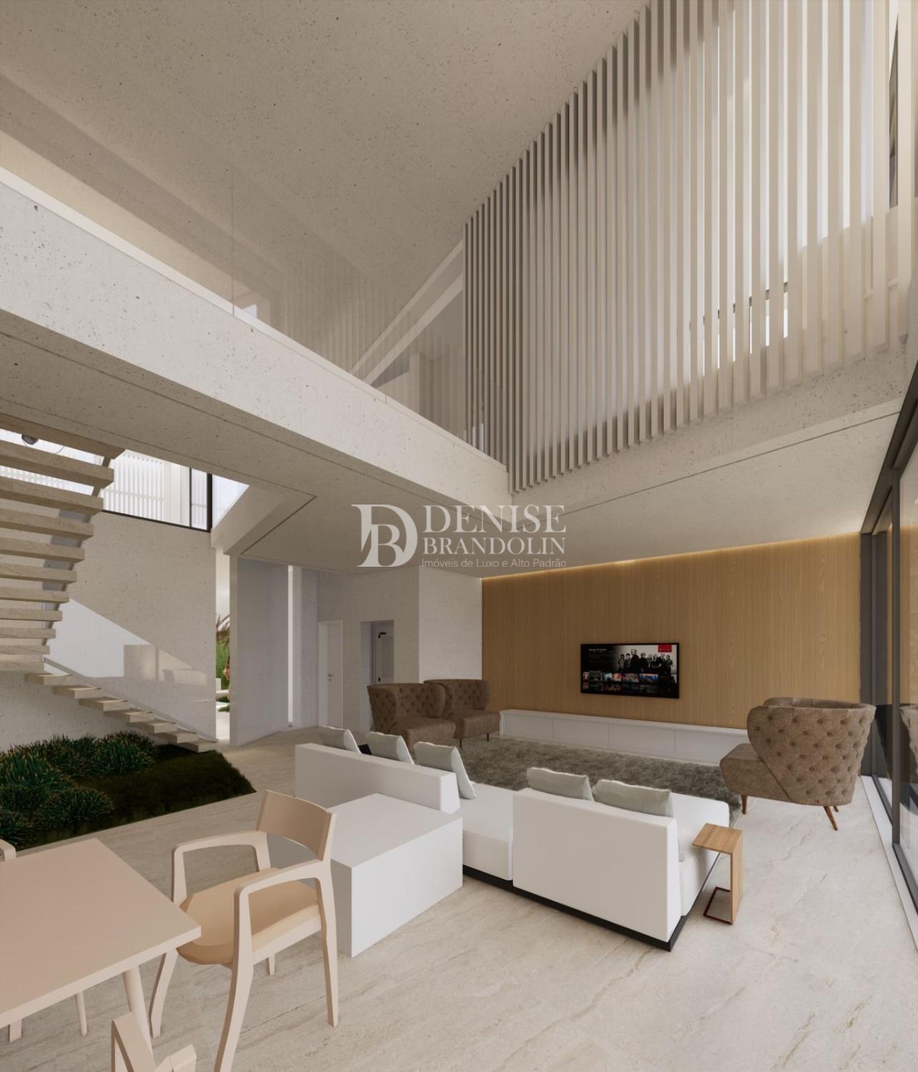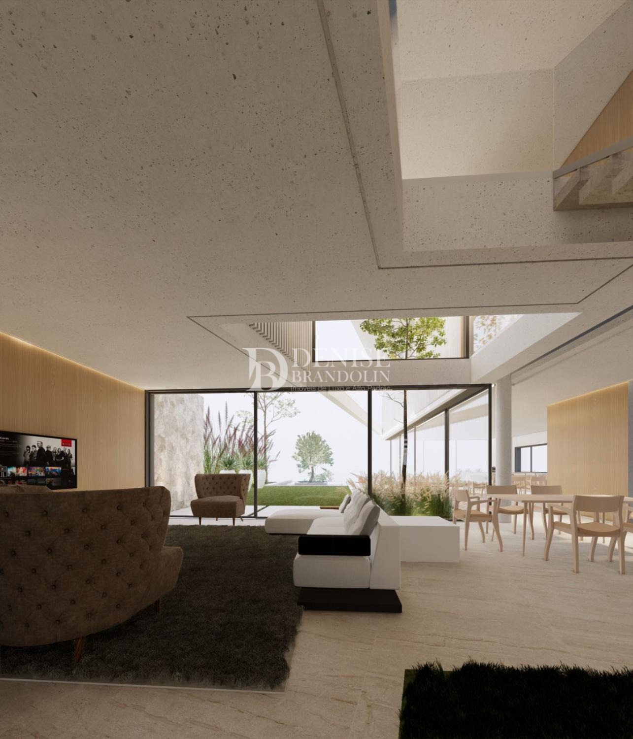4 suítes com closet, sala de estar, sala de jantar, sala de TV, Cozinha, despensa, lavabo, escritório, área de serviço e garagem para 3 carros cobertos.