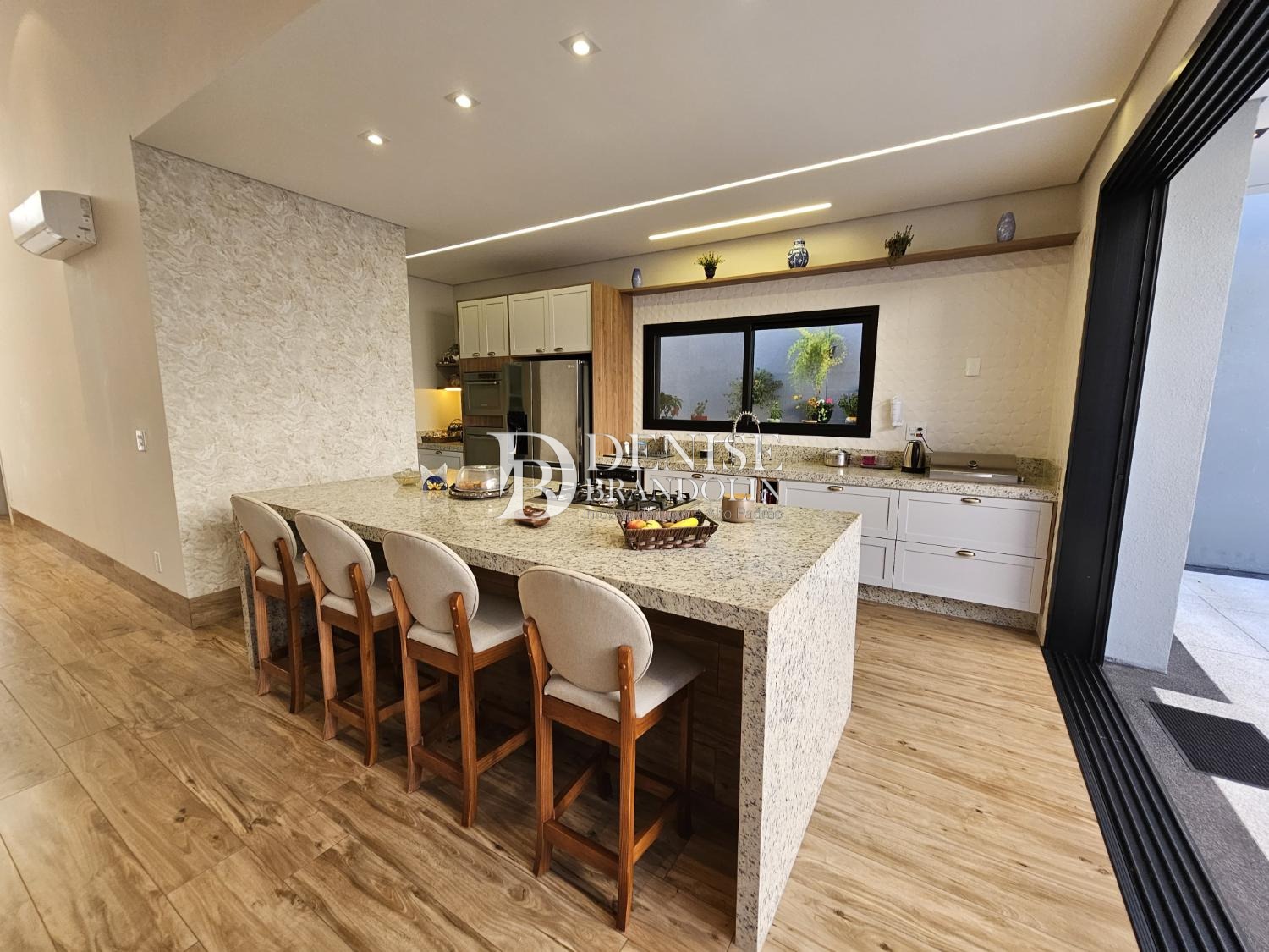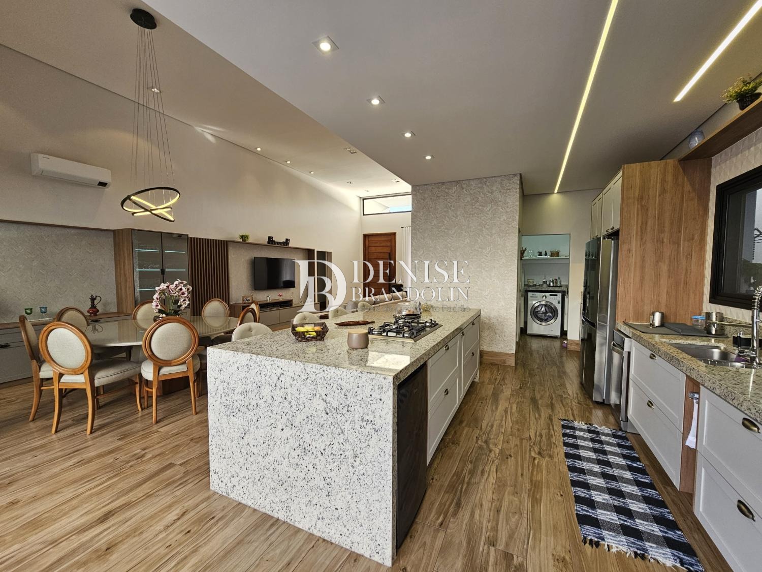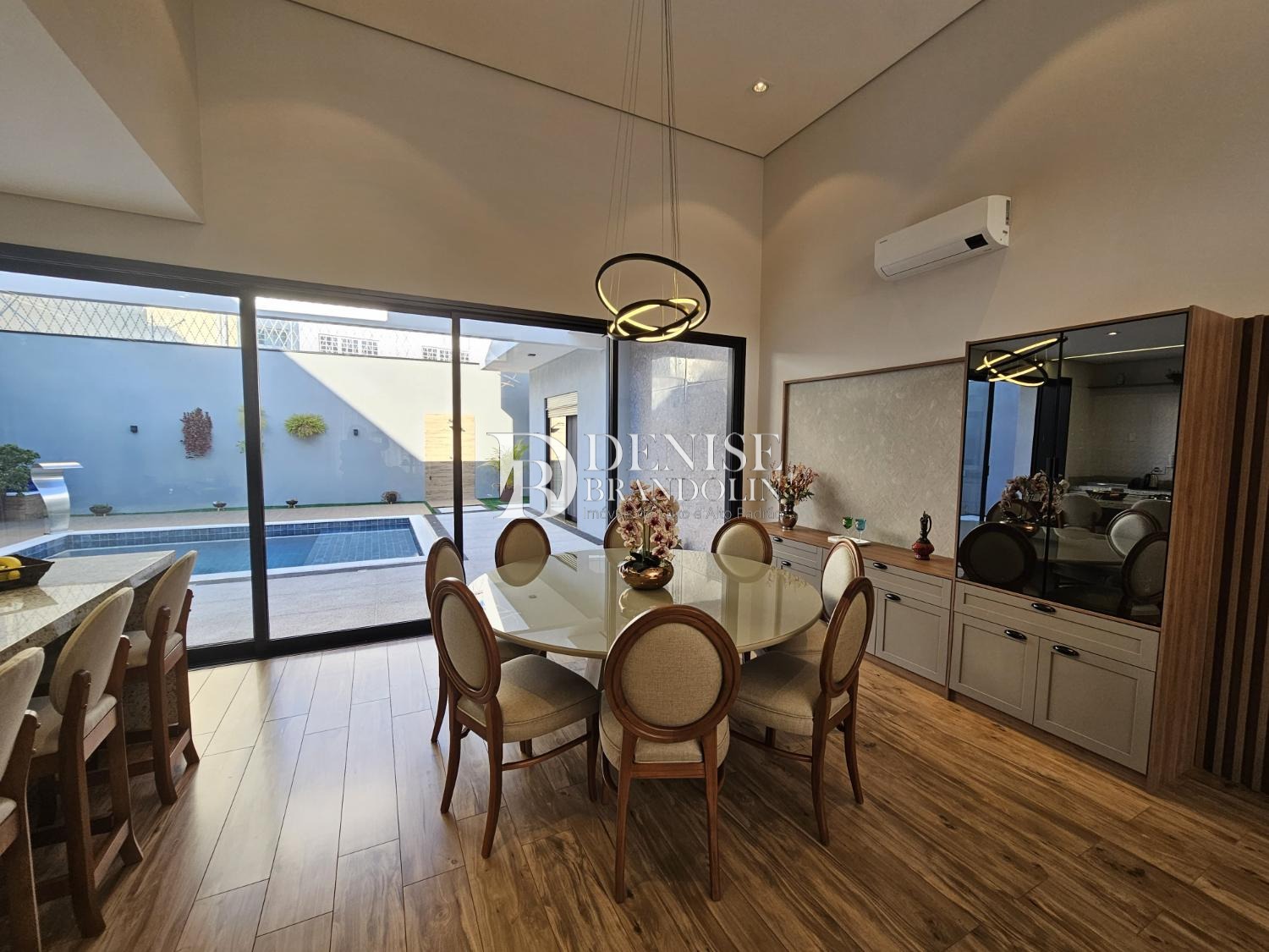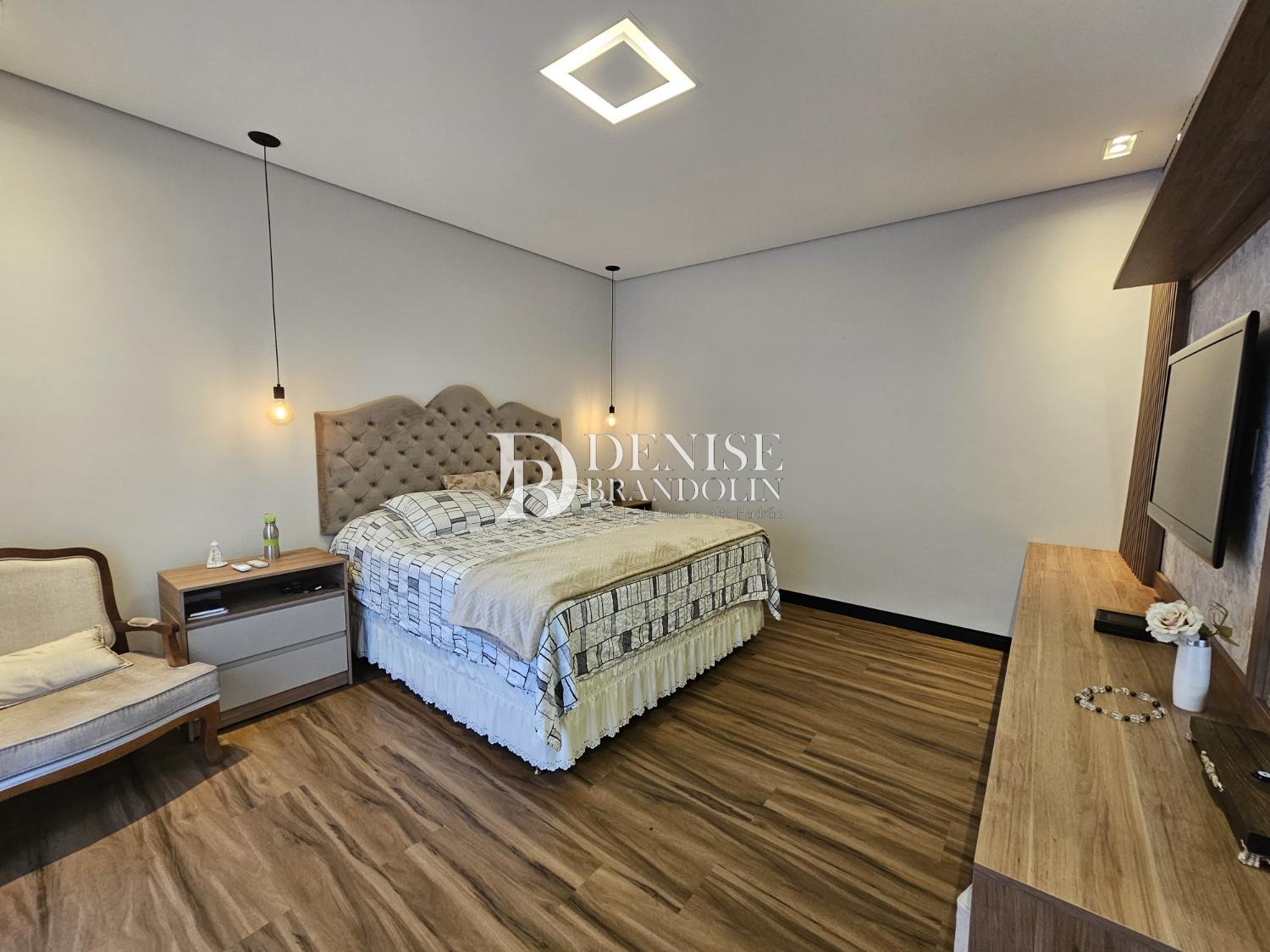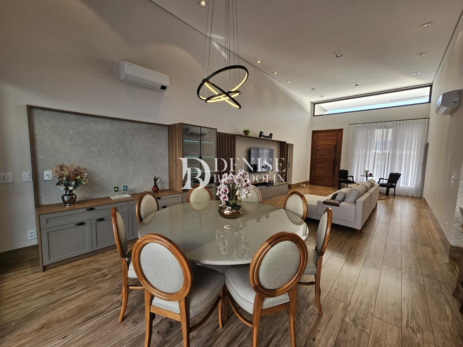 4 suítes, sendo a master com closet, Living com pé direito alto para vários ambientes, lavabo, cozinha planejada, escritório reversível em suíte, despensa, lavanderia e garagem para 6 carros.
