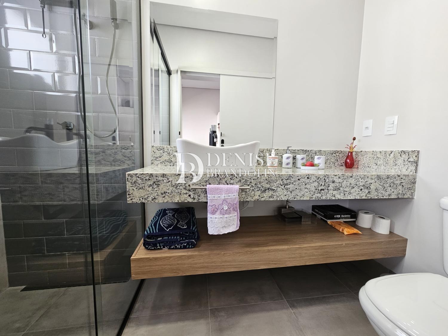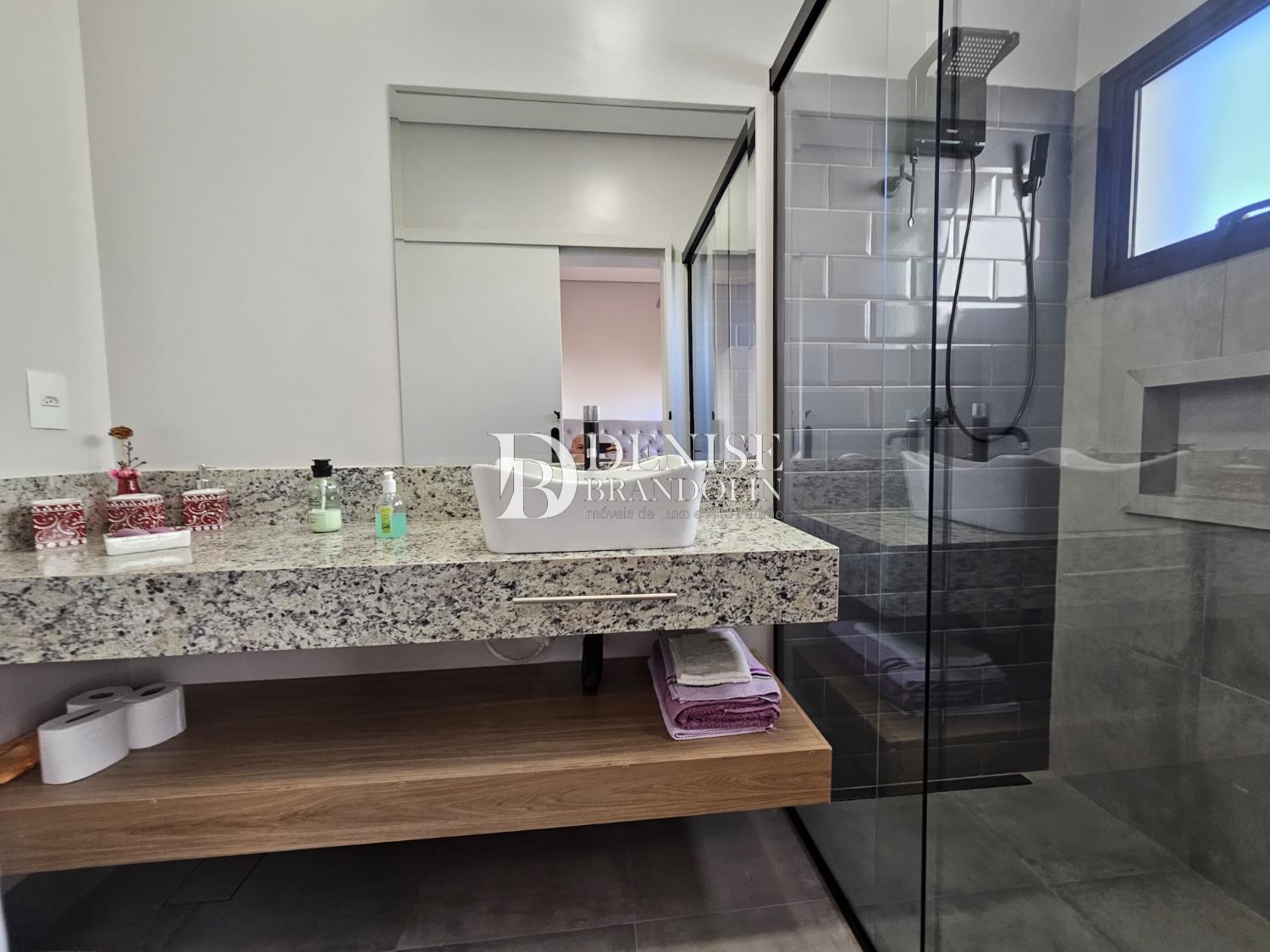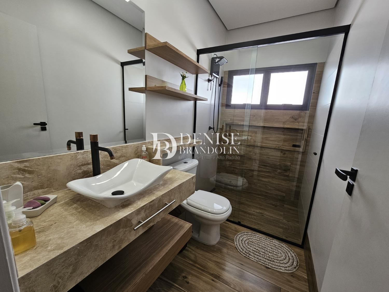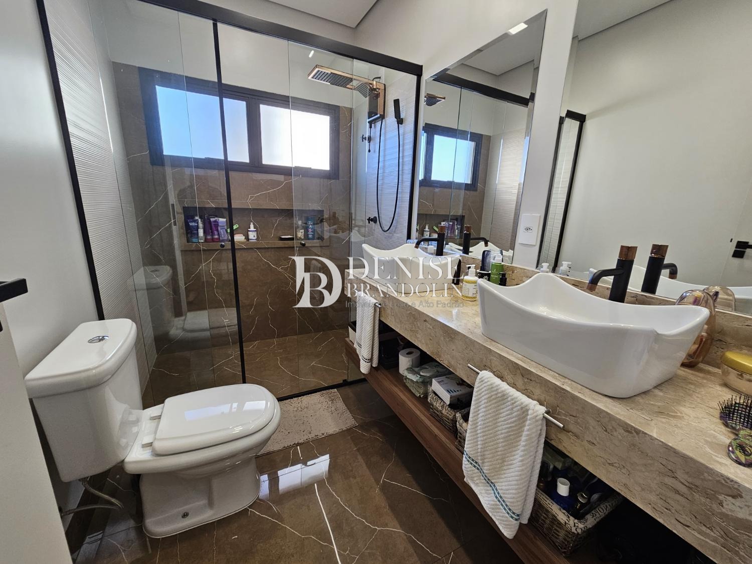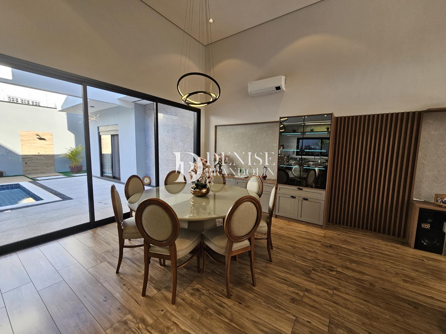 4 suítes, sendo a master com closet, Living com pé direito alto para vários ambientes, lavabo, cozinha planejada, escritório reversível em suíte, despensa, lavanderia e garagem para 6 carros.
