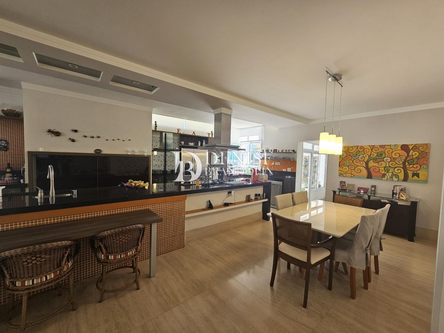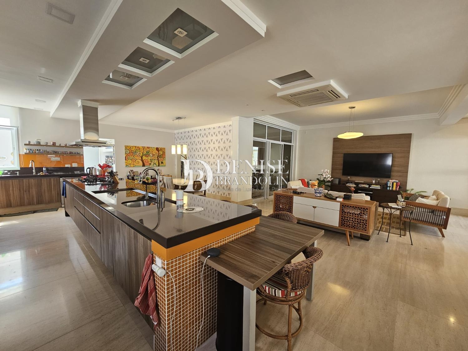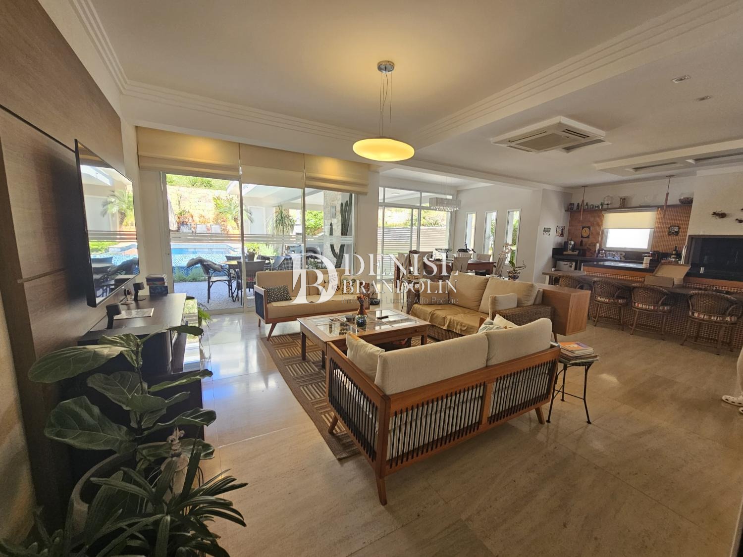 1º Pavimento: Living com pé direito para vários ambientes com lareira, lavabo, sala TV, belíssima cozinha planejada com armários Kitchens, espaço gourmet e piscina aquecida.