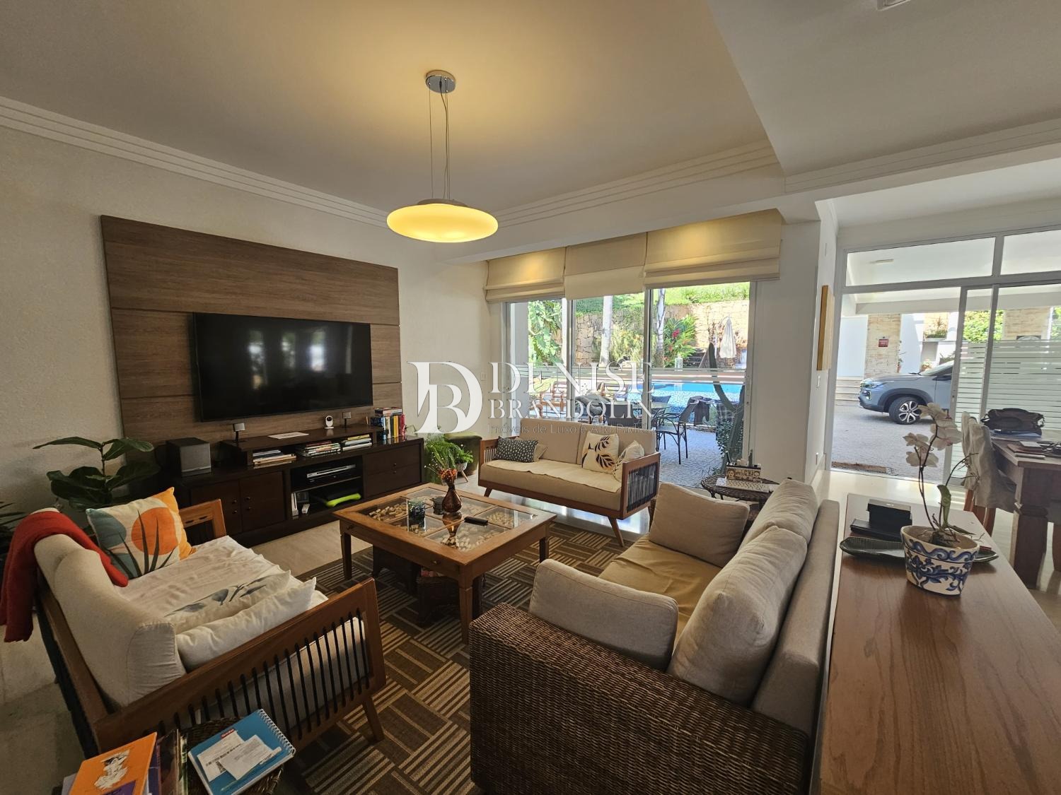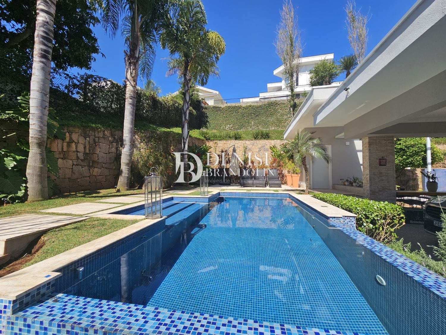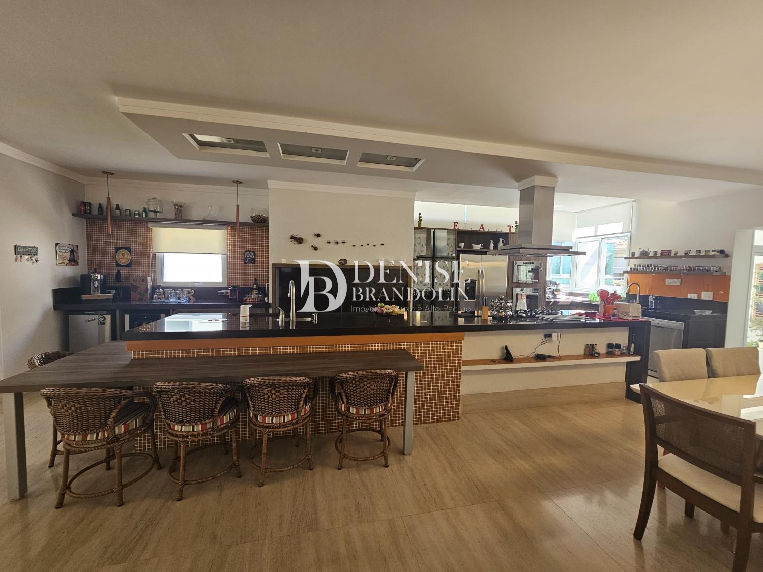 1º Pavimento: Living com pé direito para vários ambientes com lareira, lavabo, sala TV, belíssima cozinha planejada com armários Kitchens, espaço gourmet e piscina aquecida.