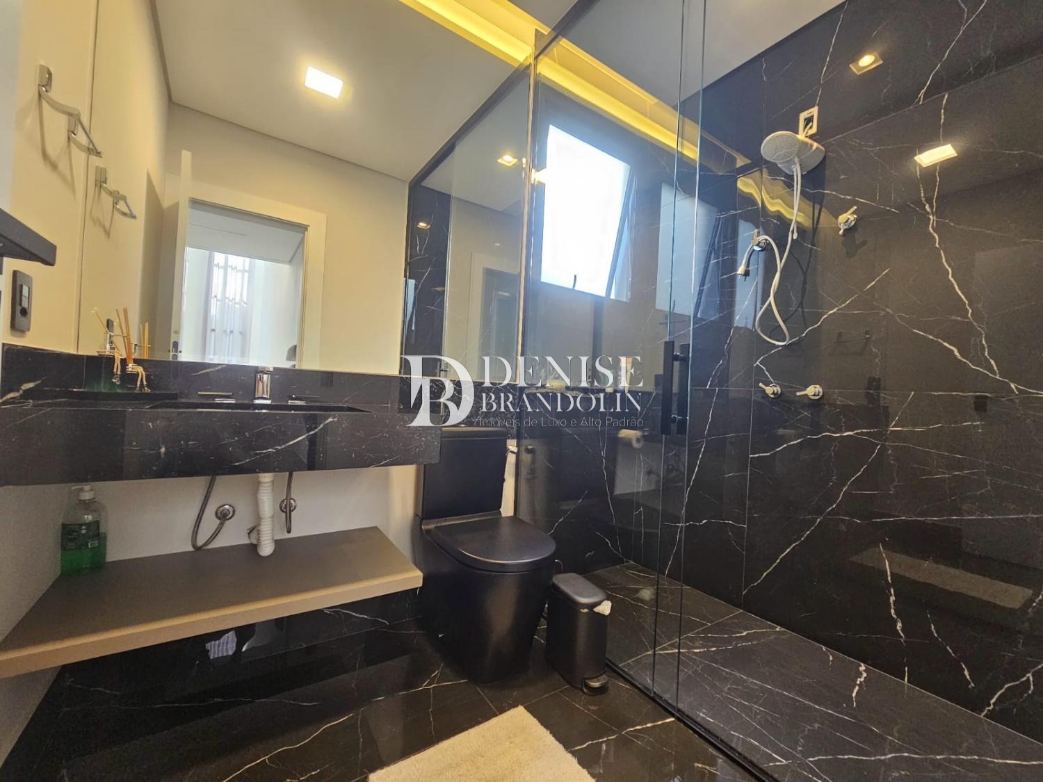 Piso superior: 3 amplas suítes todas com sacada, sendo 1 suíte master com amplo closet e banheiro com 2 duchas. Sala de TV, roupeiro e copa de apoio.