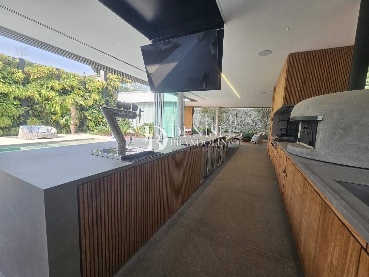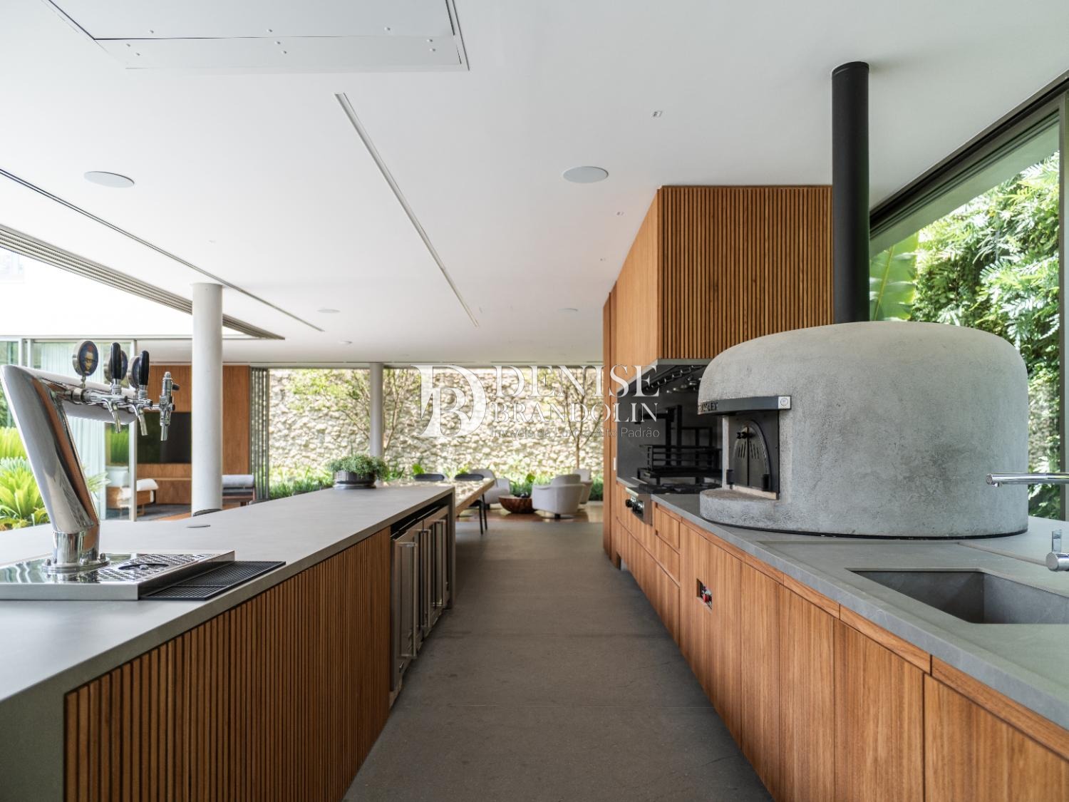 Cozinha e área gourmet completas, com armários Ornare e eletrodomésticos importados Viking, Eletromax e Betazoni.