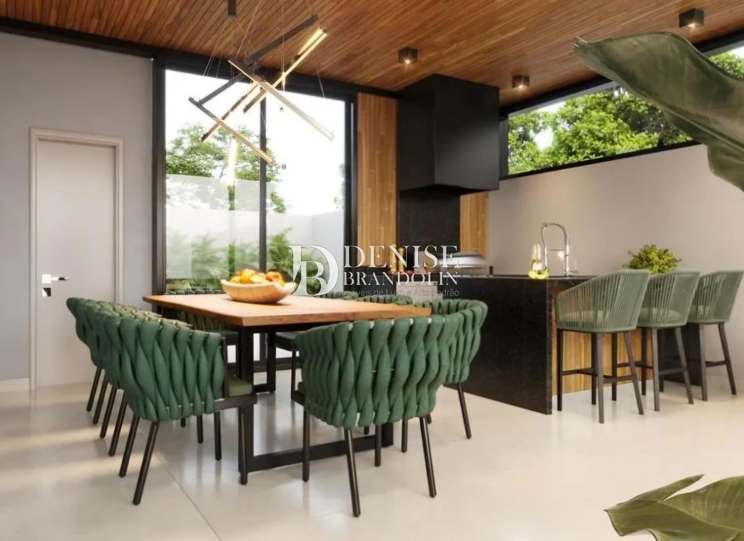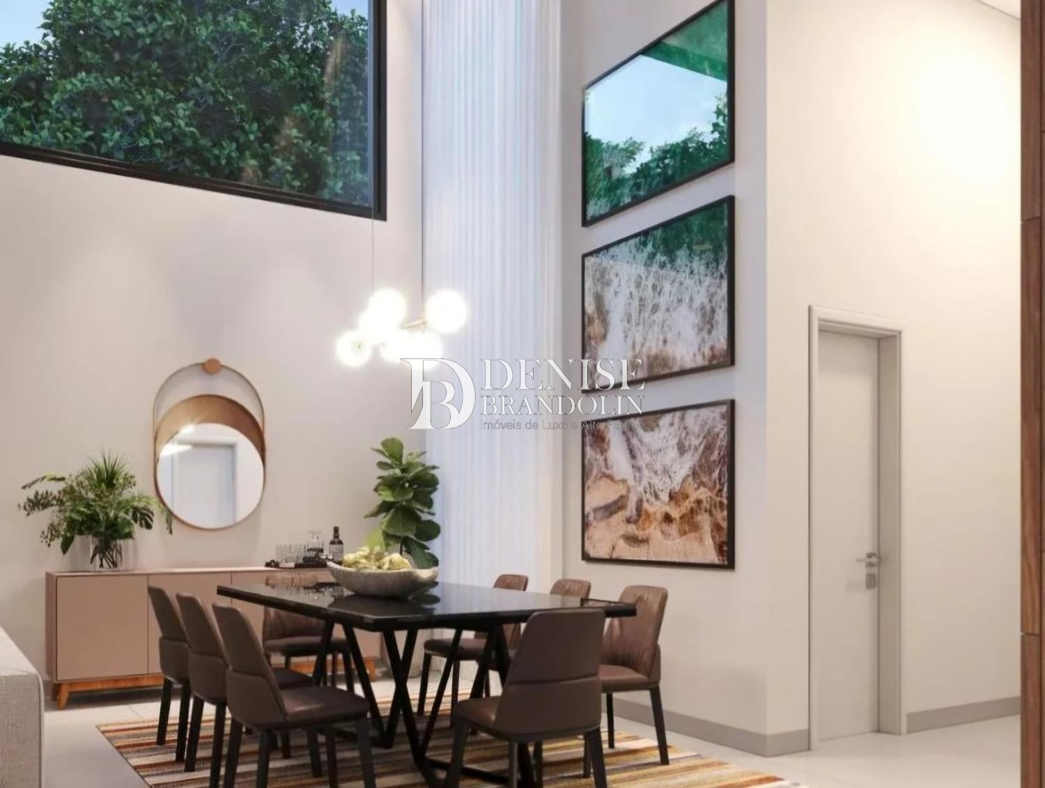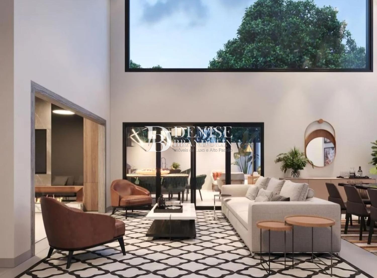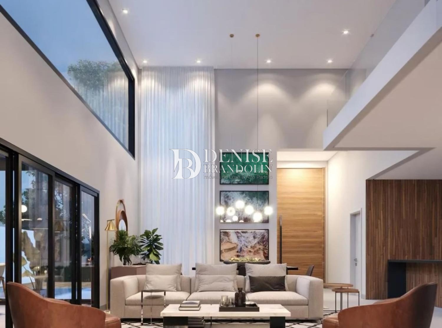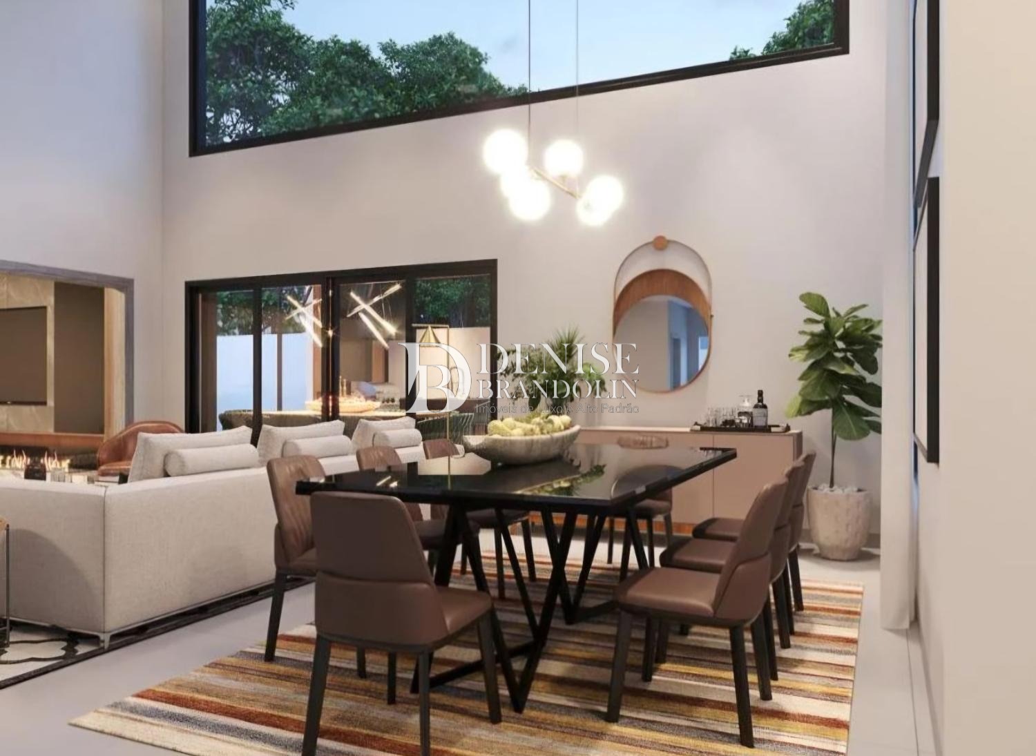 1º Pavimento: Living com pé direito para vários ambientes, lavabo, sala de tv, escritório e cozinha.