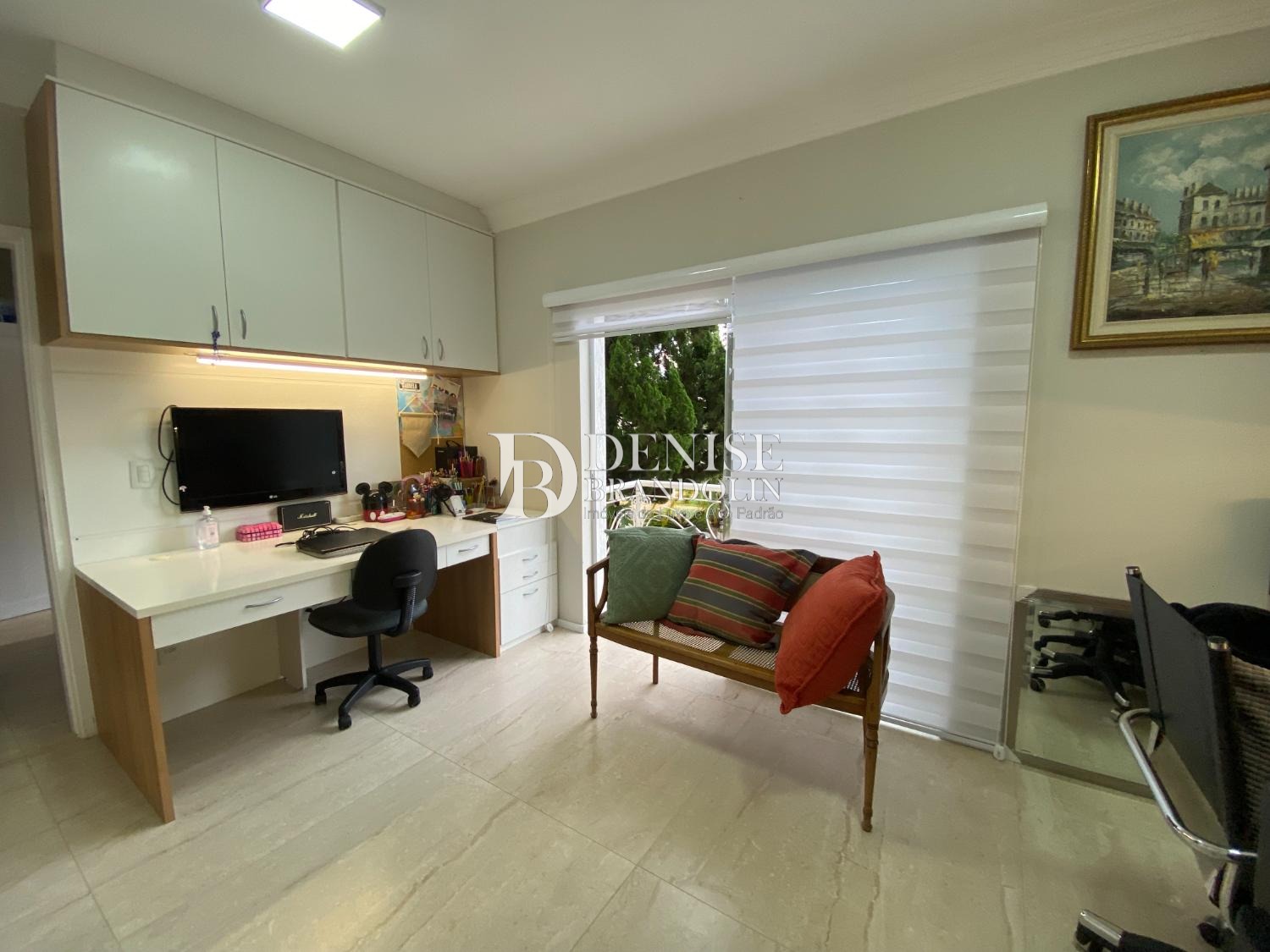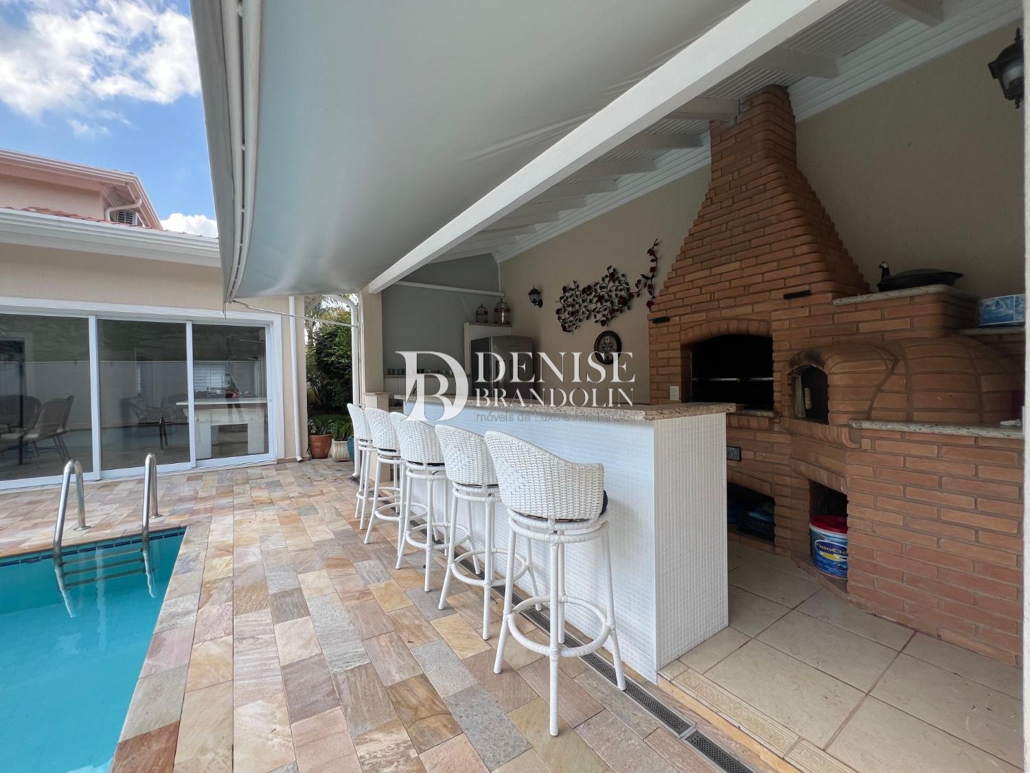 4 suítes sendo a máster com closet e hidro. Amplo living para vários ambientes integrado à varanda e sala de jantar, lavabo, escritório planejado, home, linda cozinha planejada completíssima, despensa. Suíte de empregada anexo à lavanderia planejada.Lazer privativo com piscina aquecida e espaço gourmet com churrasqueira, forno de pizza e fogão à lenha. Banheiro completo e depósito. Lindo paisagismo!!