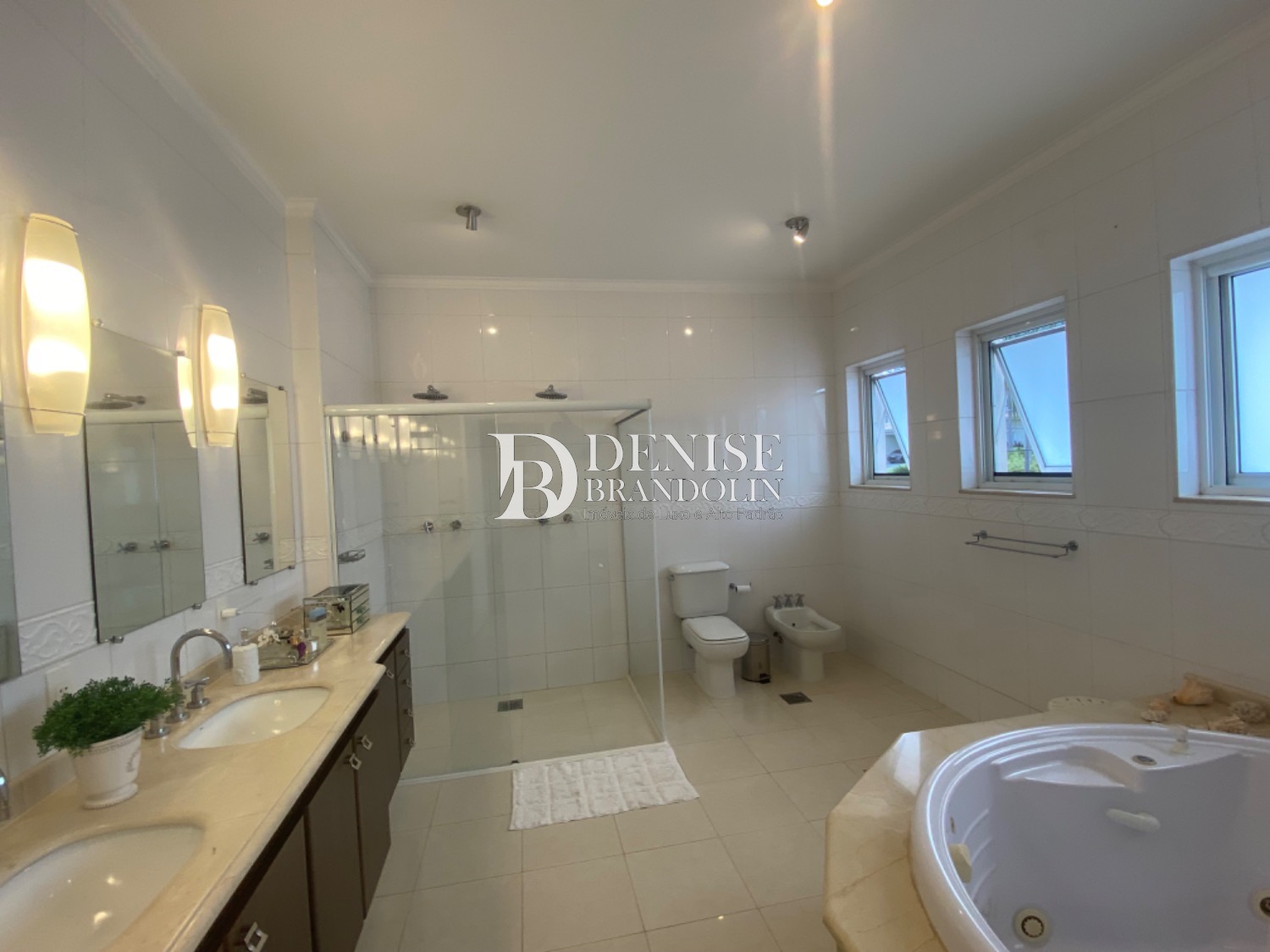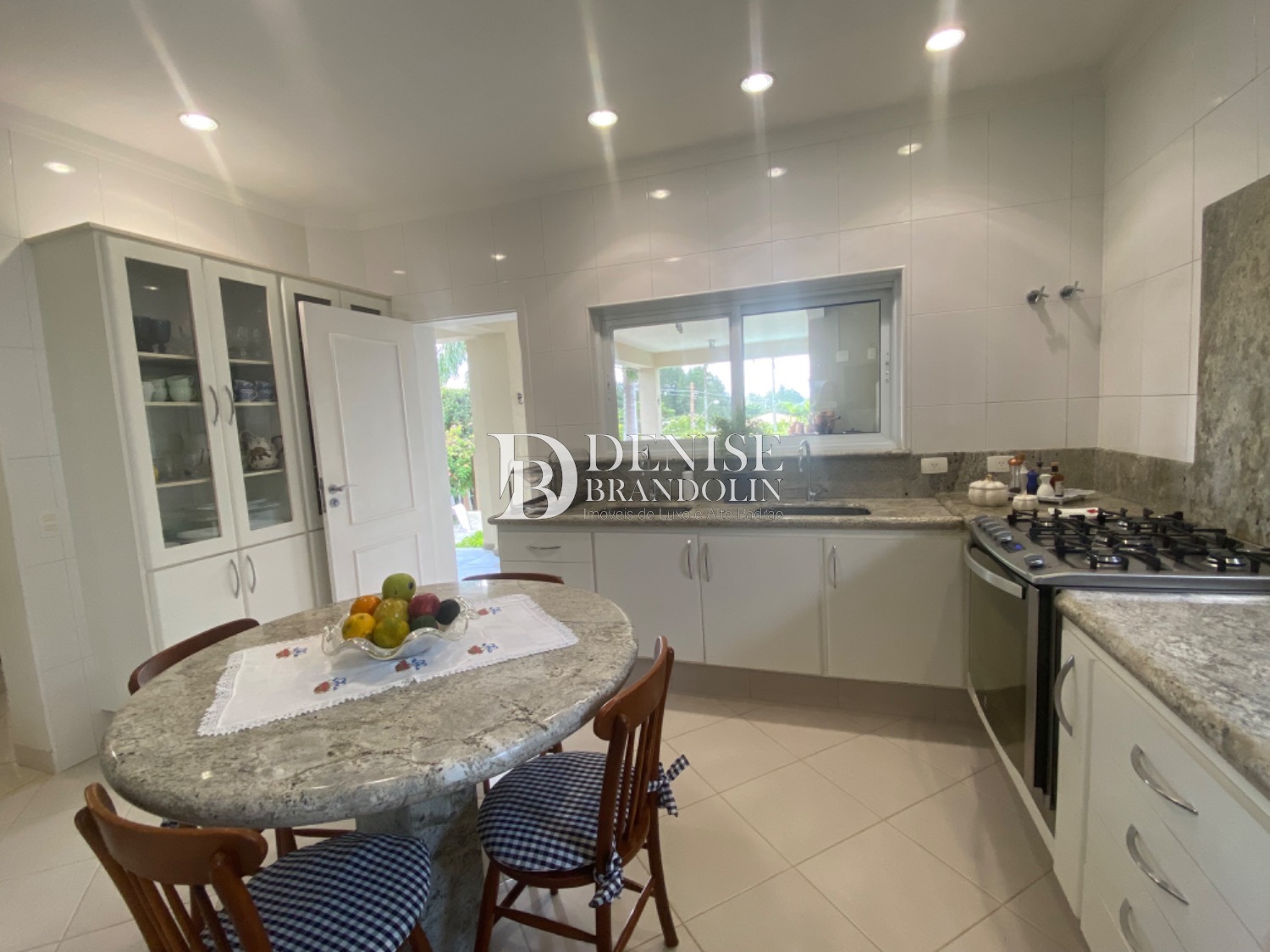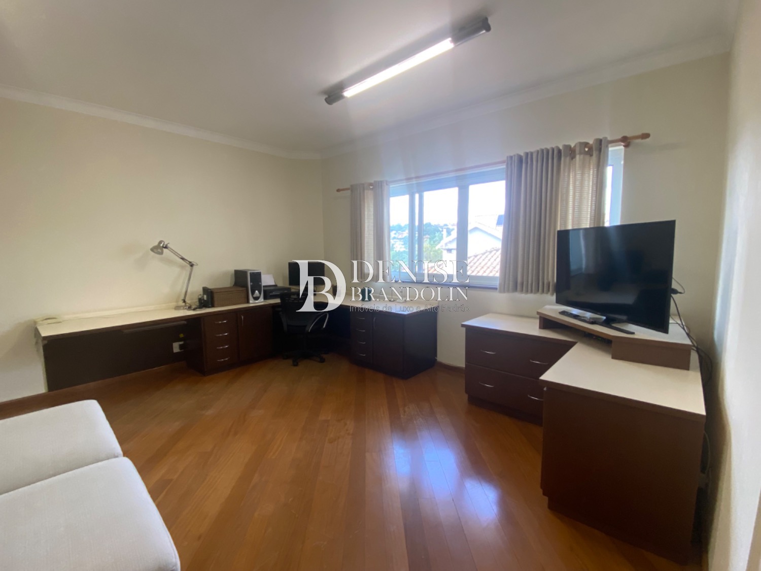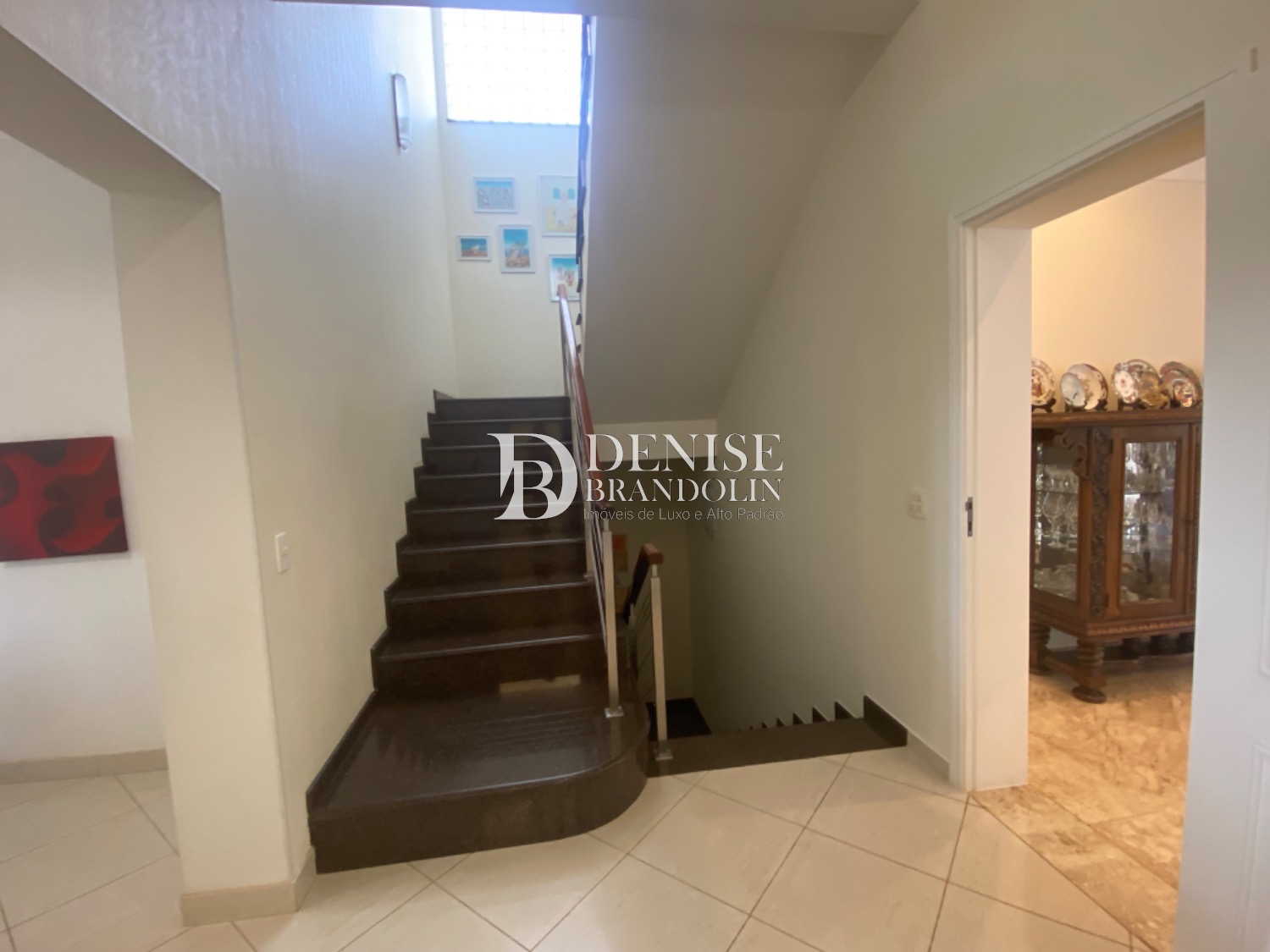 Sala para vários ambientes com lareira, lavabo, escritório, sala de TV, copa, cozinha rica em armários, despensa, suíte no térreo. 4 amplas suítes no piso superior sendo a máster com closet e hidro. Sala de TV.