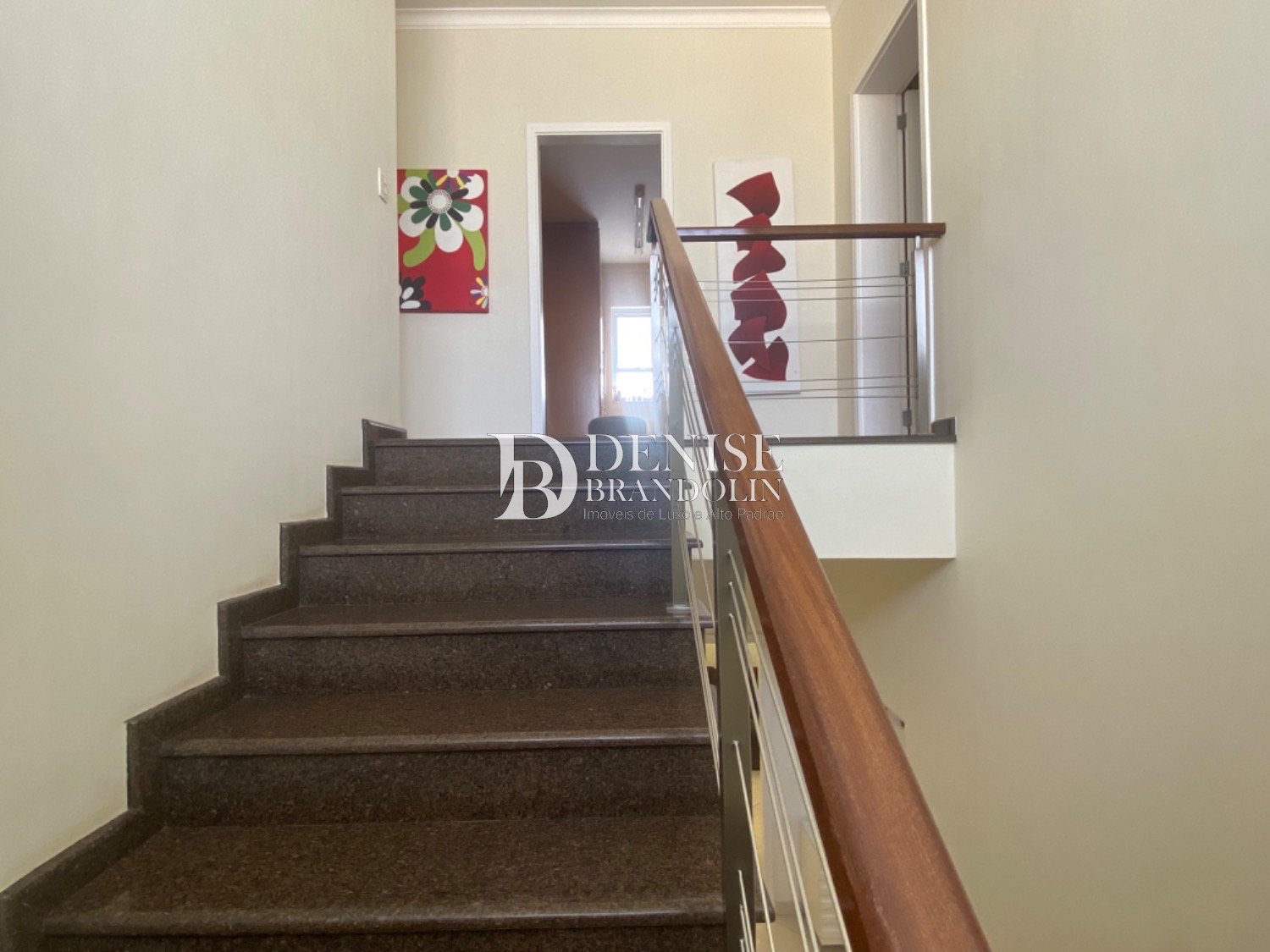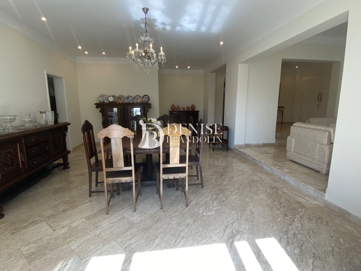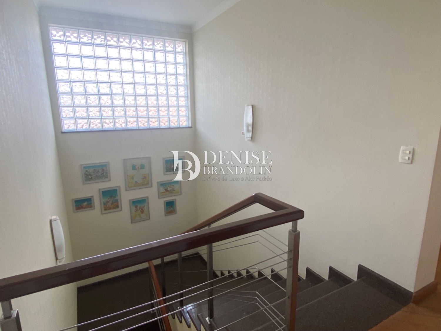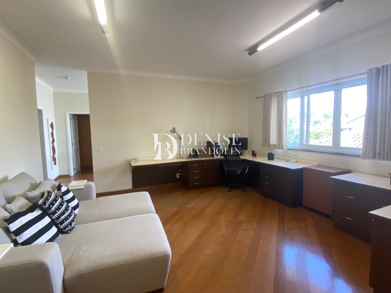 Sala para vários ambientes com lareira, lavabo, escritório, sala de TV, copa, cozinha rica em armários, despensa, suíte no térreo. 4 amplas suítes no piso superior sendo a máster com closet e hidro. Sala de TV.