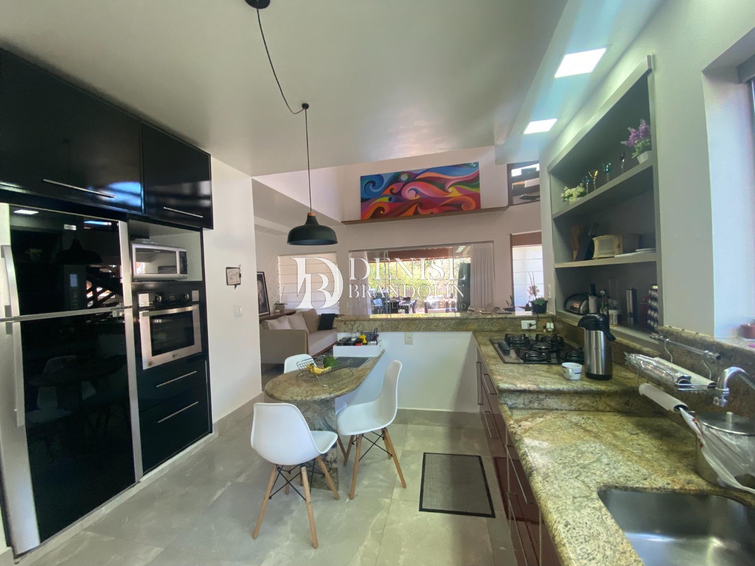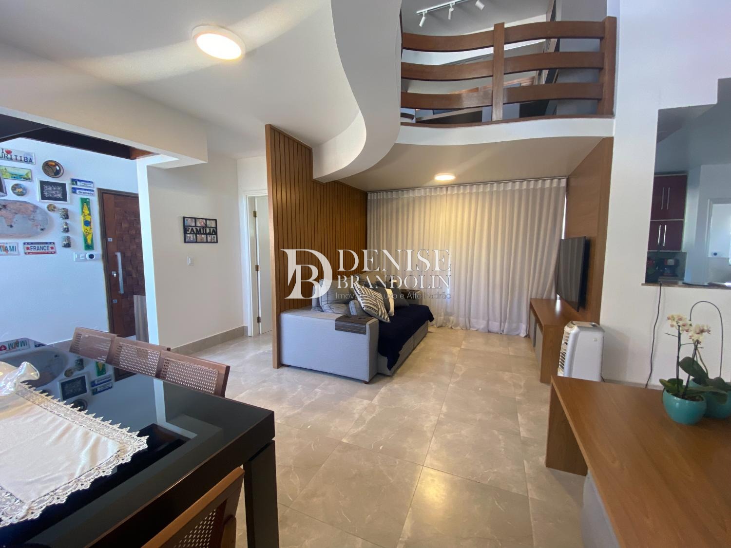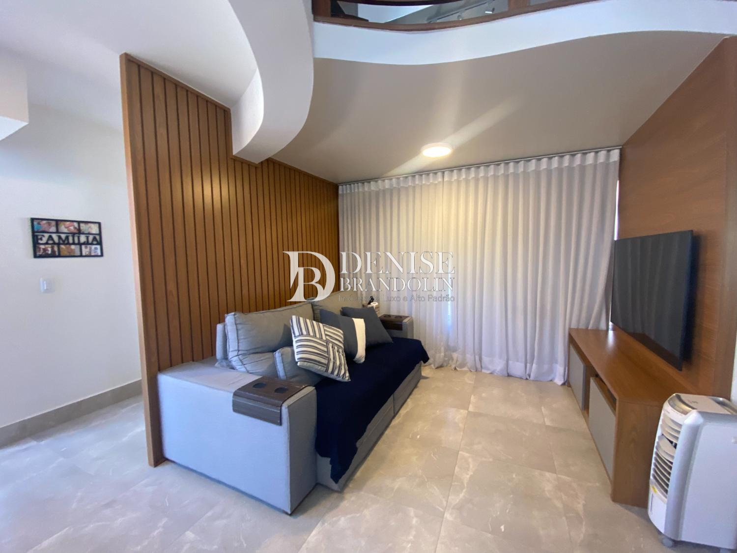 Living para 2 ambientes, lavabo, cozinha planejada com despensa, área de serviço com banheiro completo.