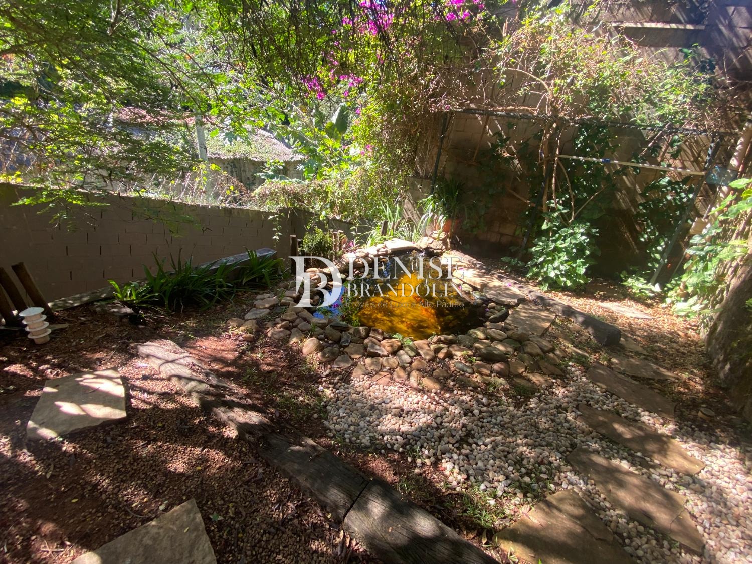Quintal amplo com lago ornamental.