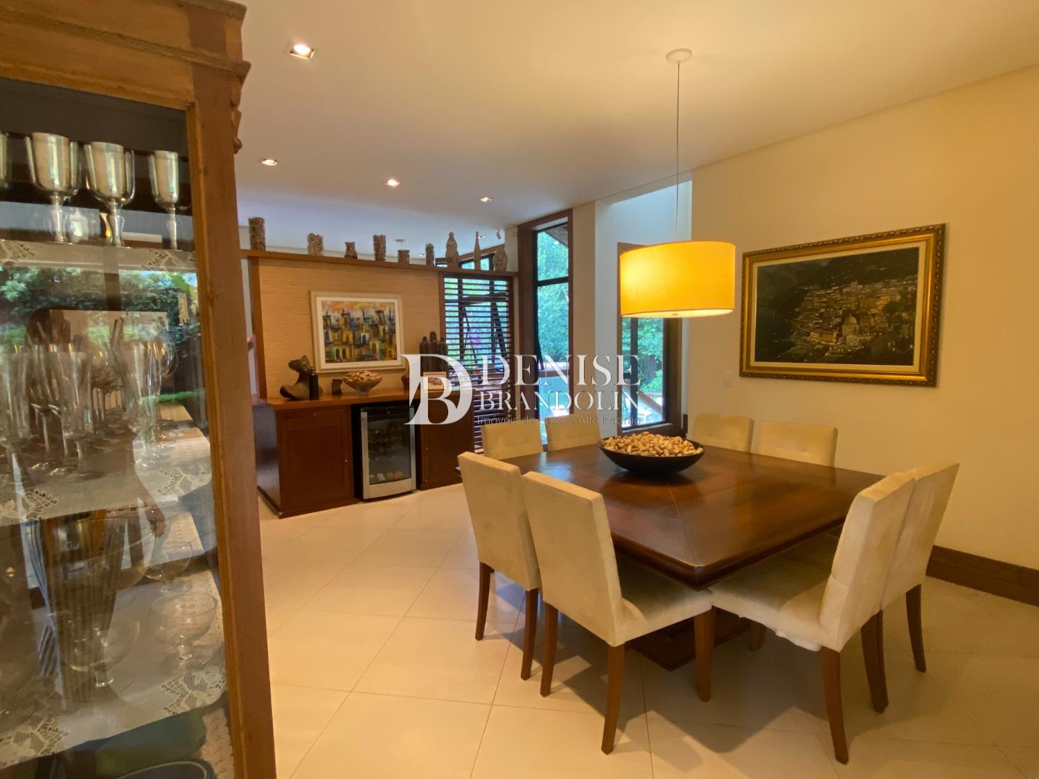 04 dormitórios, sendo 04 suítes, 01 delas no térreo, cozinha americana planejada, escritório, home theater. Sala de estar com lareira. Lazer privativo com aconchegante espaço gourmet completo, com churrasqueira, fogão à lenha e forno de pizza, piscina com "spa" aquecida. Exuberante paisagismo.