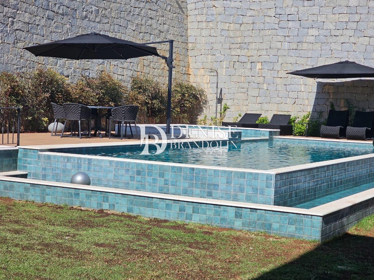 Sala com ambientes integrados, cozinha planejada, lavabo, home cinema, escritório, adega climatizada para 400 garrafas fabricado pela Arte des Caves, espaço gourmet com churrasqueira e piscina aquecida com hidromassagem.