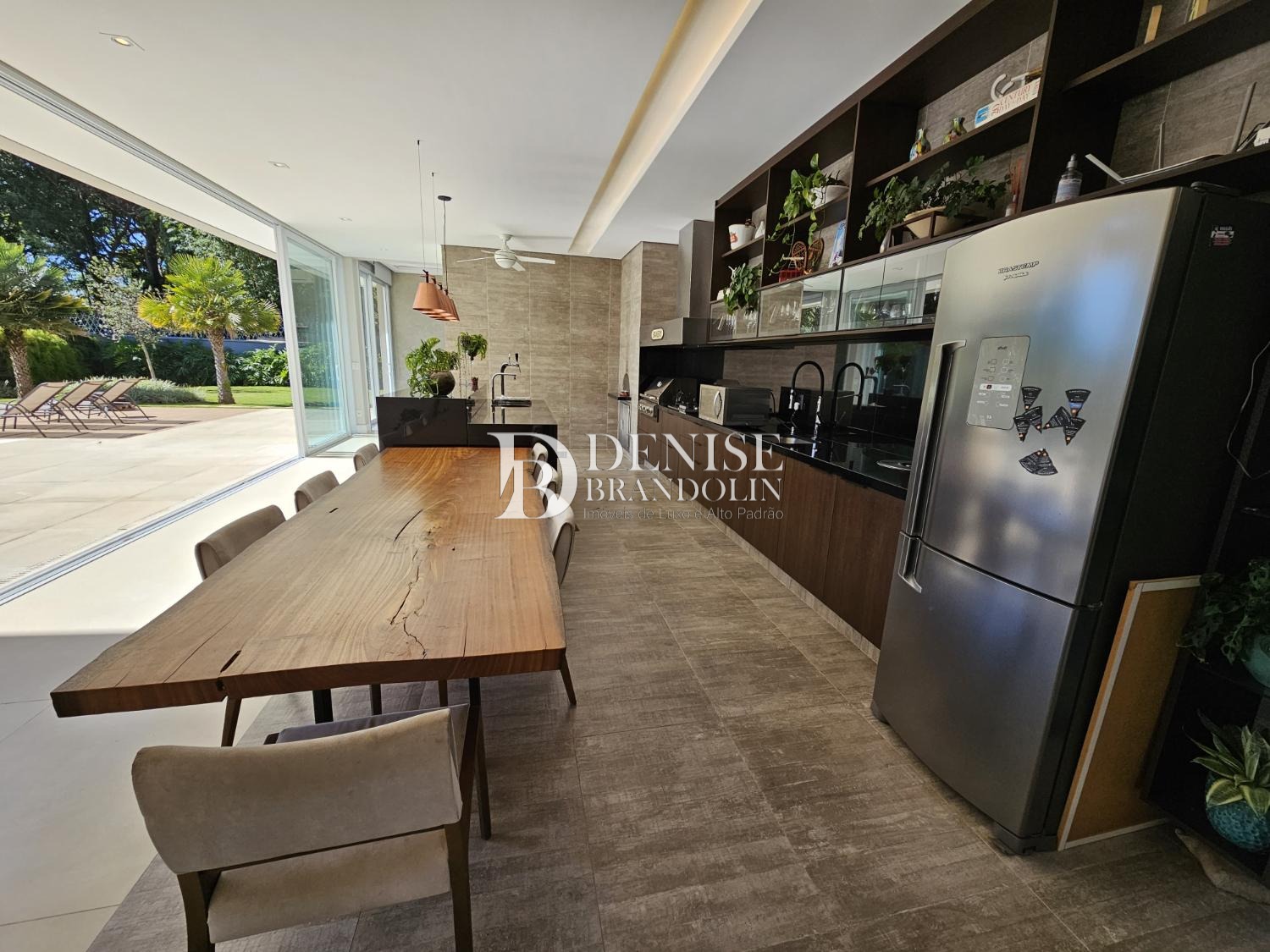 1º Pavimento: Living para vários ambientes, lavabo, Home cinema 02 escritórios, belíssima cozinha, adega com capacidade para 560 garrafas, espaço gourmet com churrasqueira, forno de pizza, chopeira e piscina aquecida.