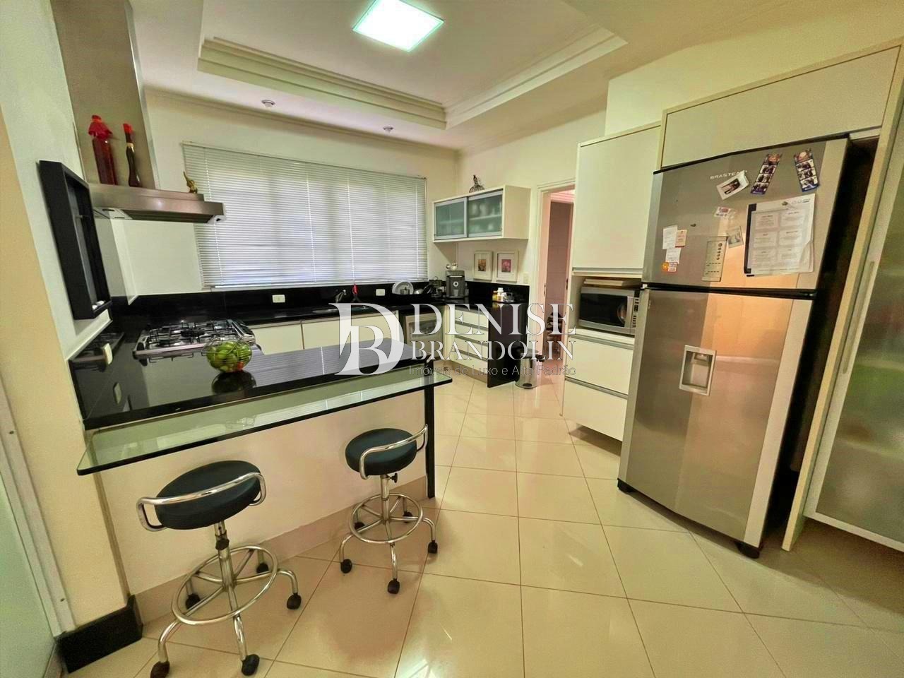 Térreo: Cozinha planejada, rica em armários, com sala de almoço, amplo living com lareira, sala de estar e jantar, lavabo, escritório e home theater.
