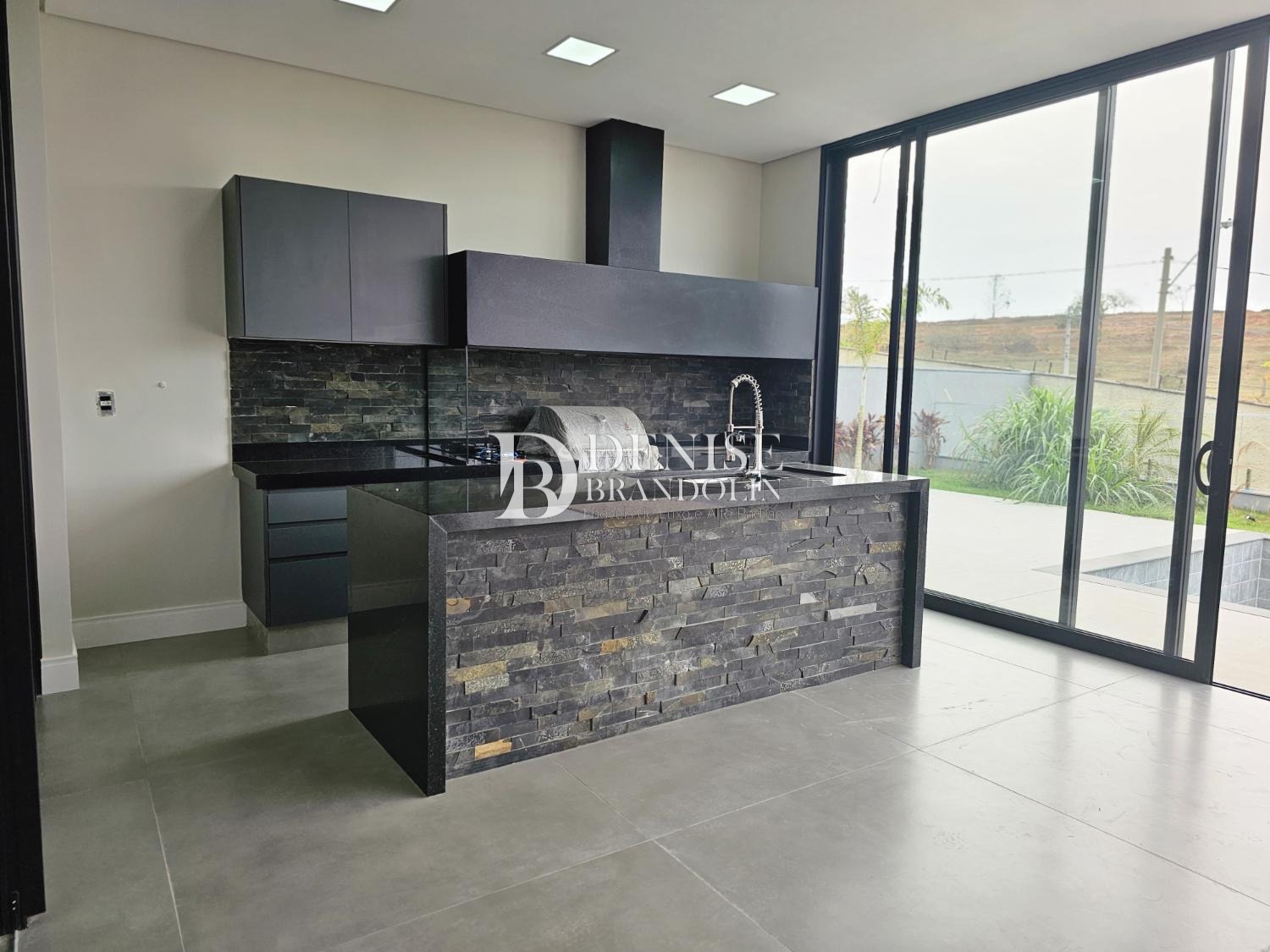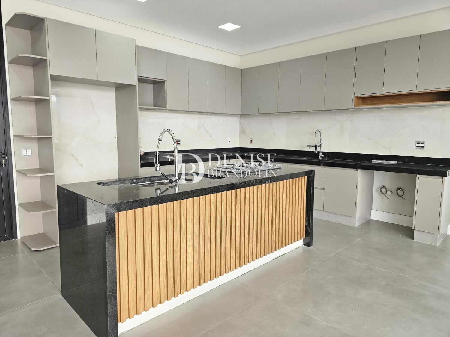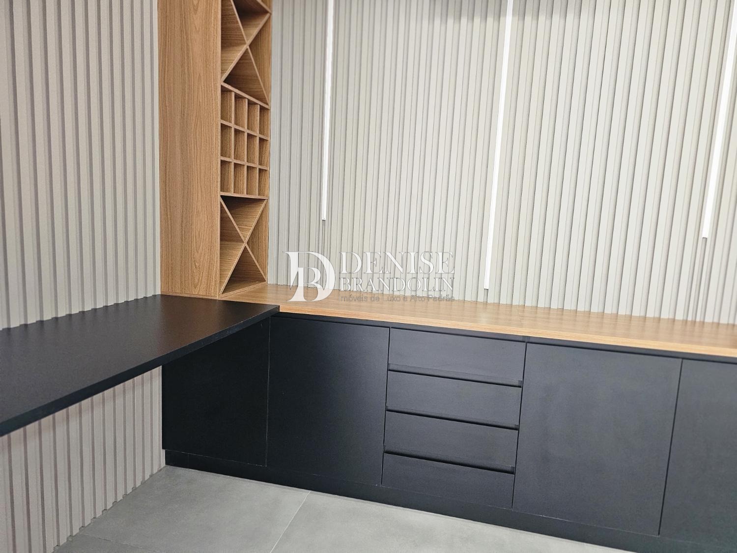 Cozinha planejada e integrada a área gourmet, adega, lavabo e escritório (reversível para suíte)