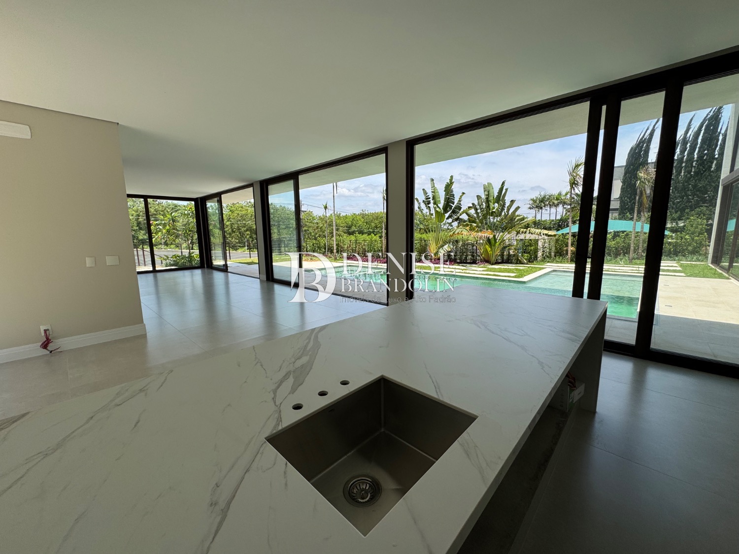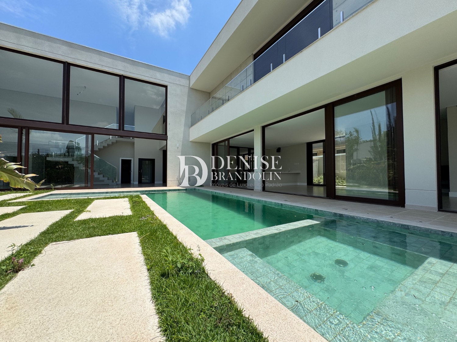 A casa possui 890m² de terreno e oferece uma área construída de 631m², 5 dormitórios, sendo cinco suítes, elevador, lavabo, área de serviço com suíte de serviço, lavanderia, cozinha americana, sacada, varanda e muito mais. Além disso, a casa possui um pé direito duplo impressionante e um elevador!