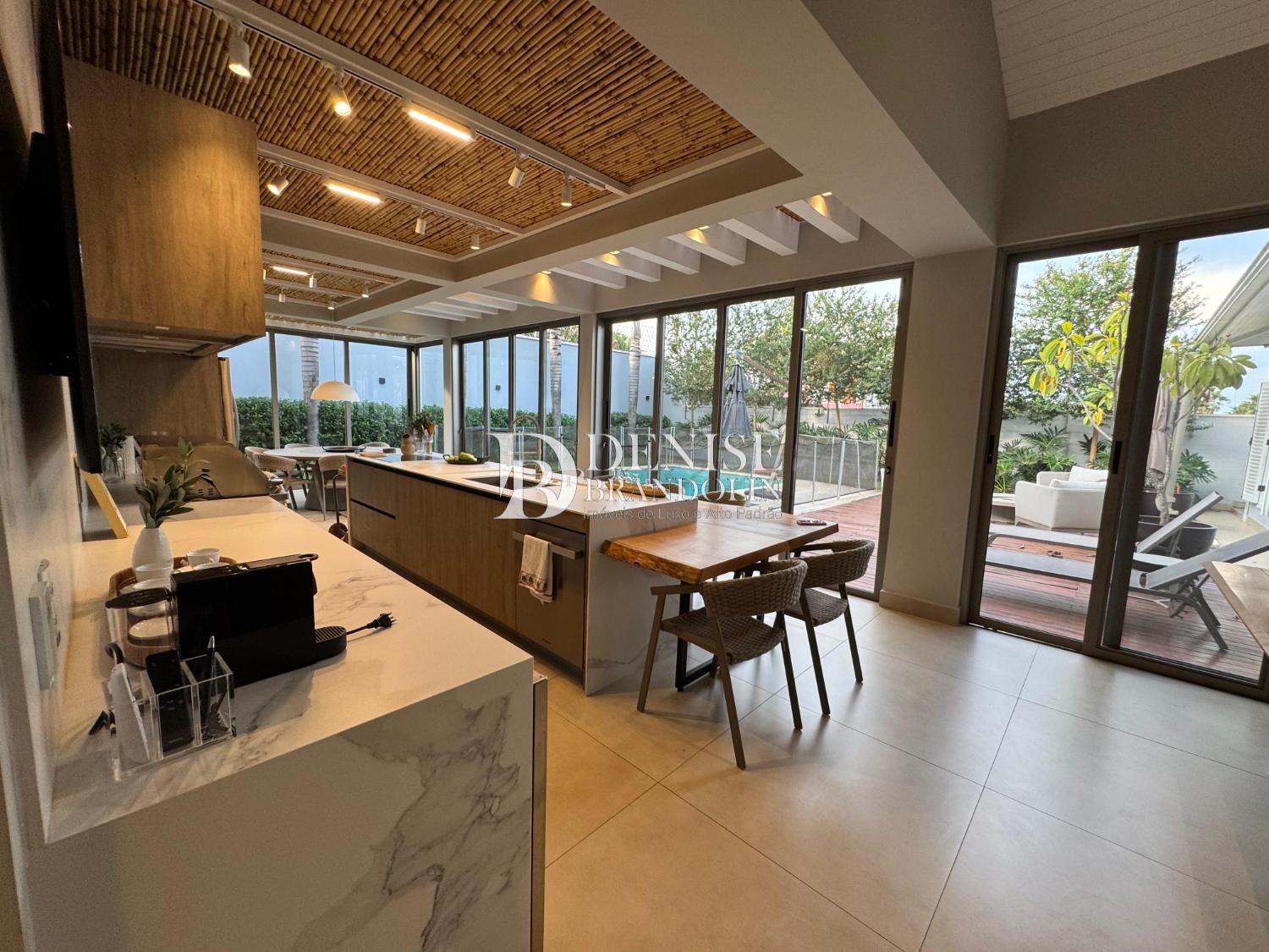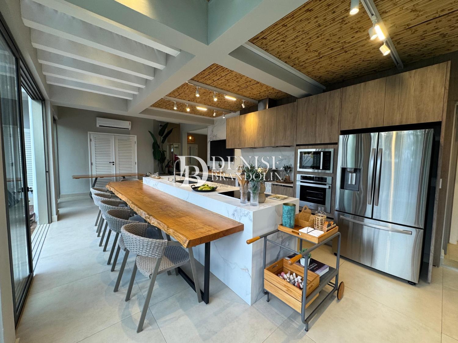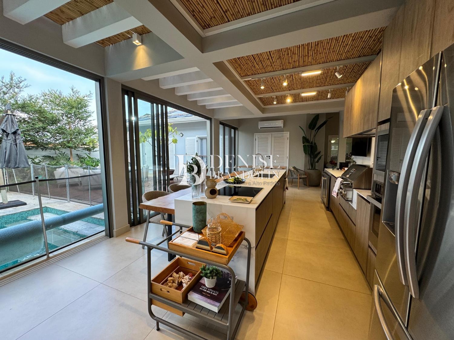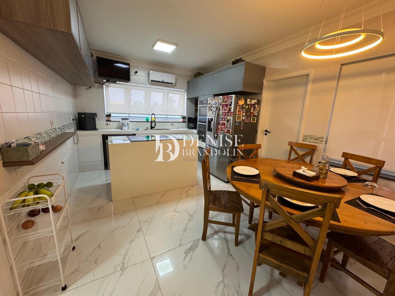 Cozinha planejada, despensa, lavanderia e depósito.