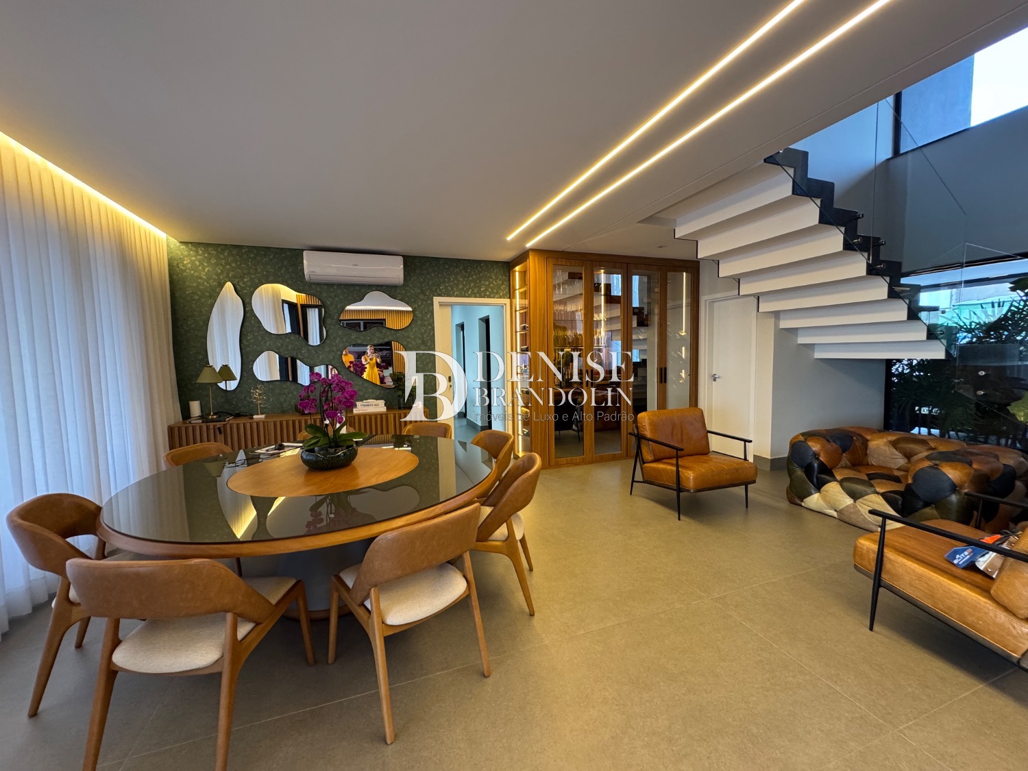 Casa com 06 suítes sendo 01 no térreo e uma transformada em home, escritório com entrada independente, charmosa sala de estar com pé direito duplo, sala de jantar, lavabo, dependência de serviços completa. Lavanderia planejada. Brinquedoteca.
