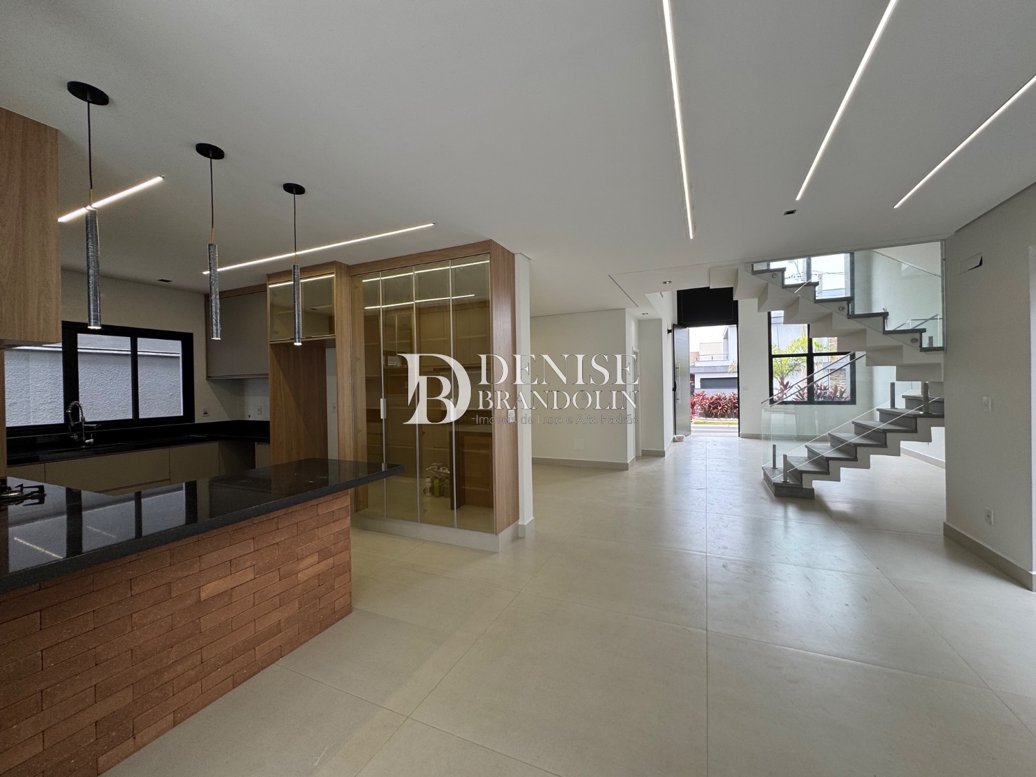 Sala de estar com pé direito duplo, sala de jantar, home theater que pode ser revertido em uma suíte no térreo, lavabo.