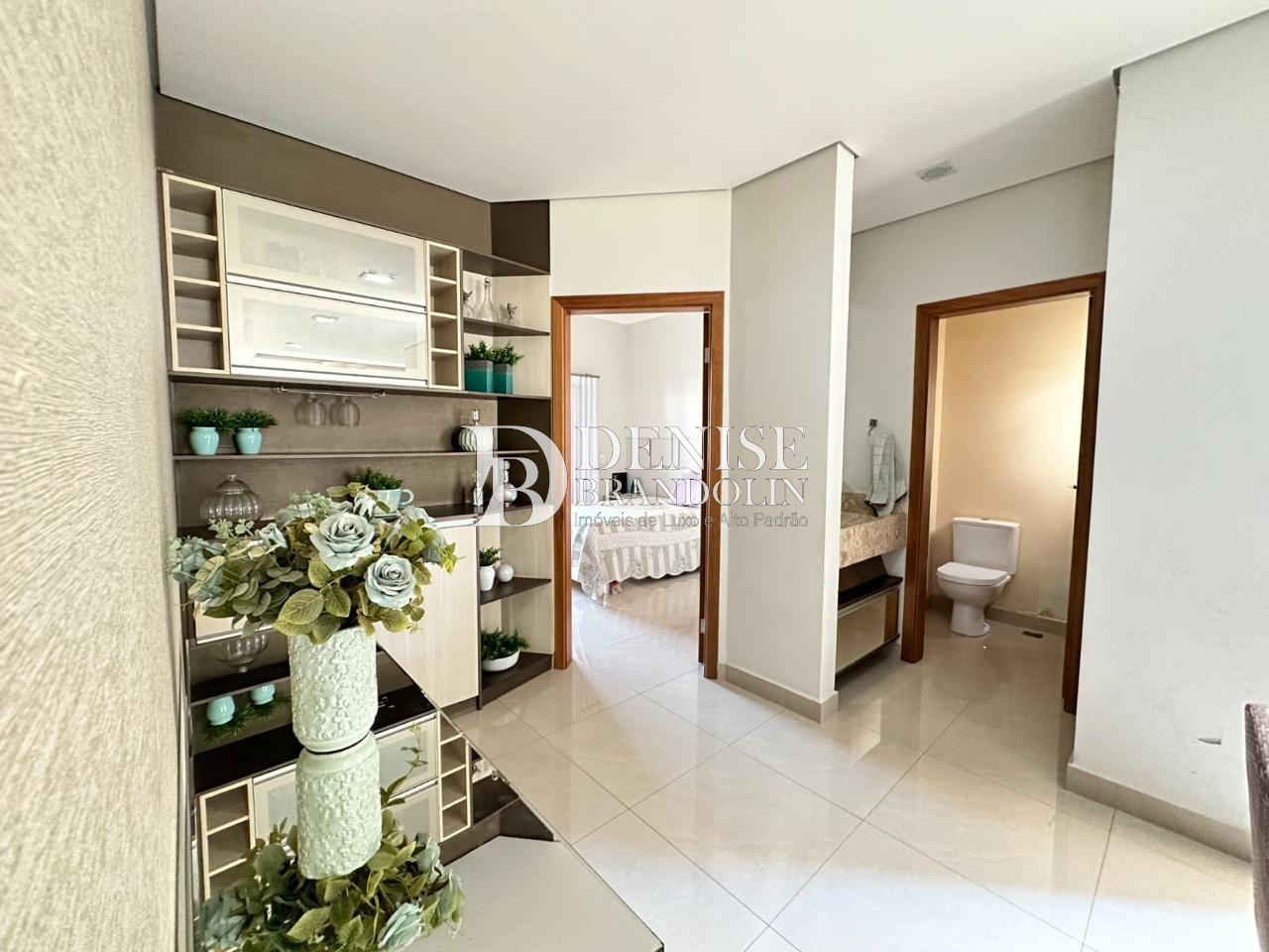 Casa com 4 amplas suítes, sendo a master com closet e banheira de hidromassagem, sala de TV, sala de jantar, lavabo, cozinha planejada, despensa, lavanderia e depósito.