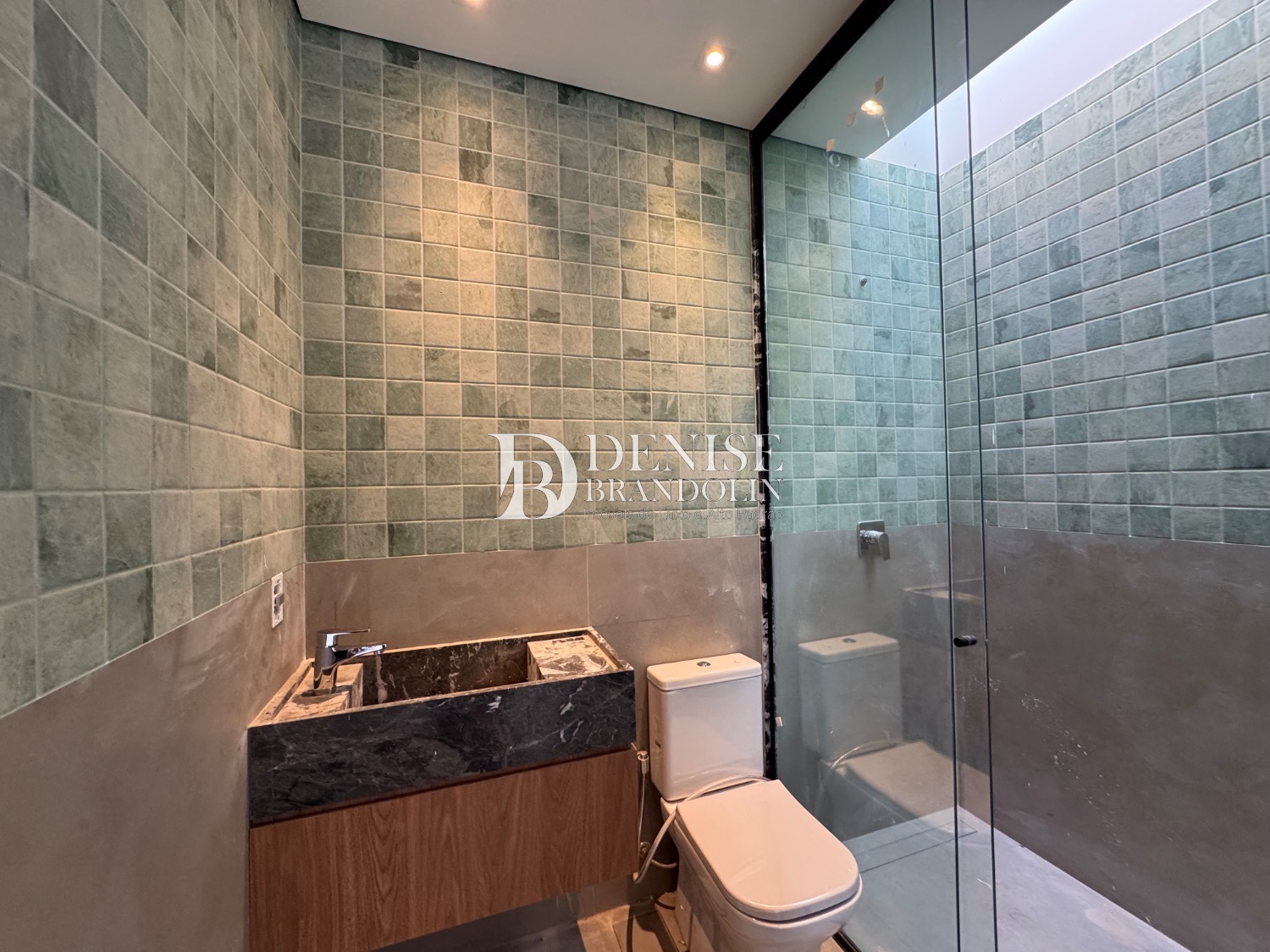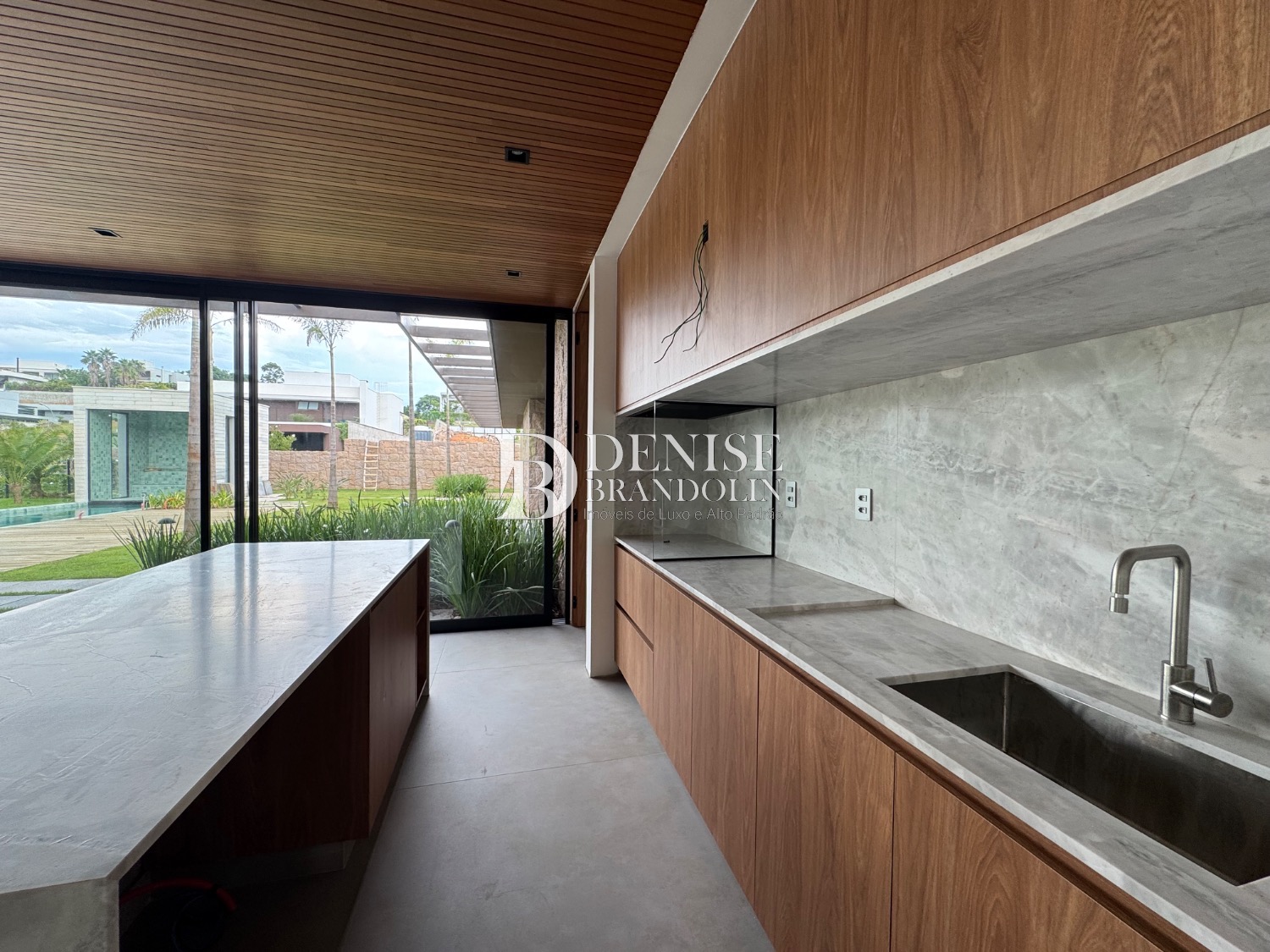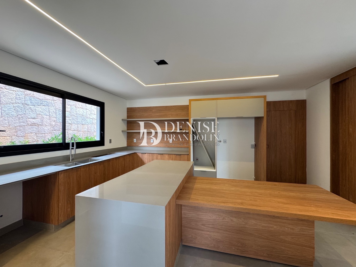 4 suítes, 5 vagas de garagem, living para vários ambientes, cozinha planejada, despensa, lavabo e escritório.