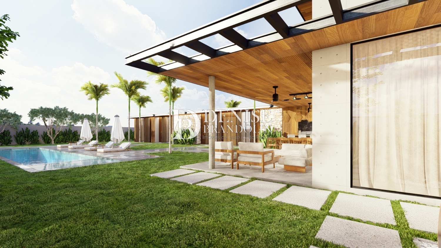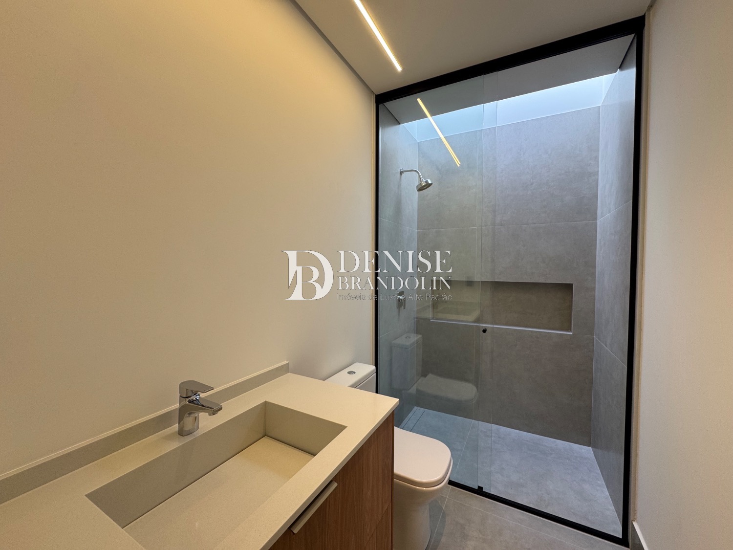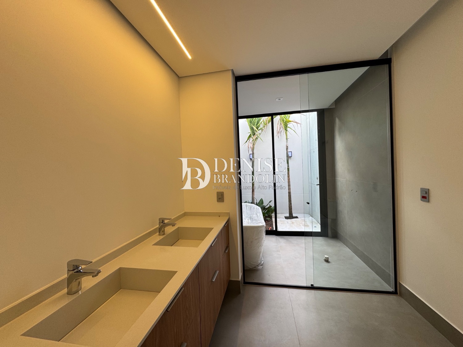 4 suítes, 5 vagas de garagem, living para vários ambientes, cozinha planejada, despensa, lavabo e escritório.