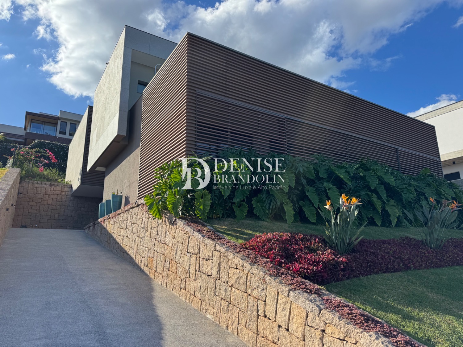 Casa com estilo moderno, minimalista, elegante e aconchegante ao mesmo tempo, fachada em granito flamejado suspenso, paisagismo estilo tropical com baixa manutenção.