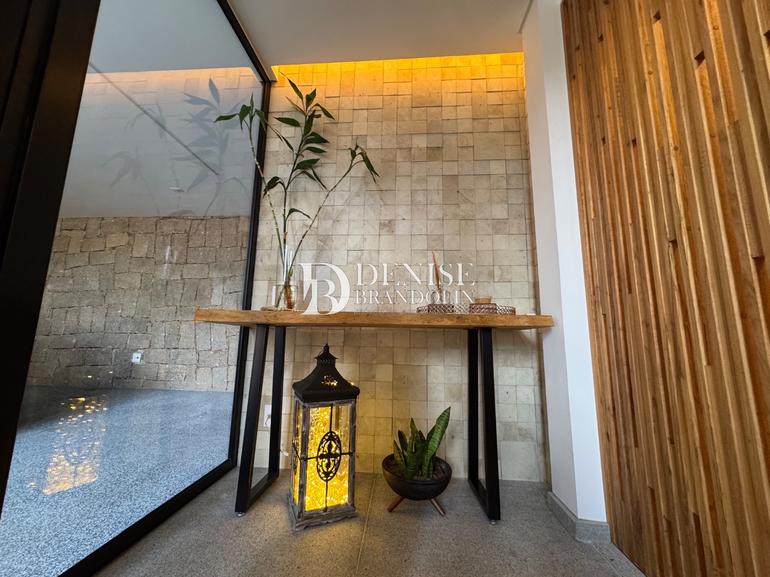 Portas internas de acabamento diferenciado com altura até o teto. Sala de TV privativa , churrasqueira e um espaço Zen com área verde no fundo para relaxar e curtir.