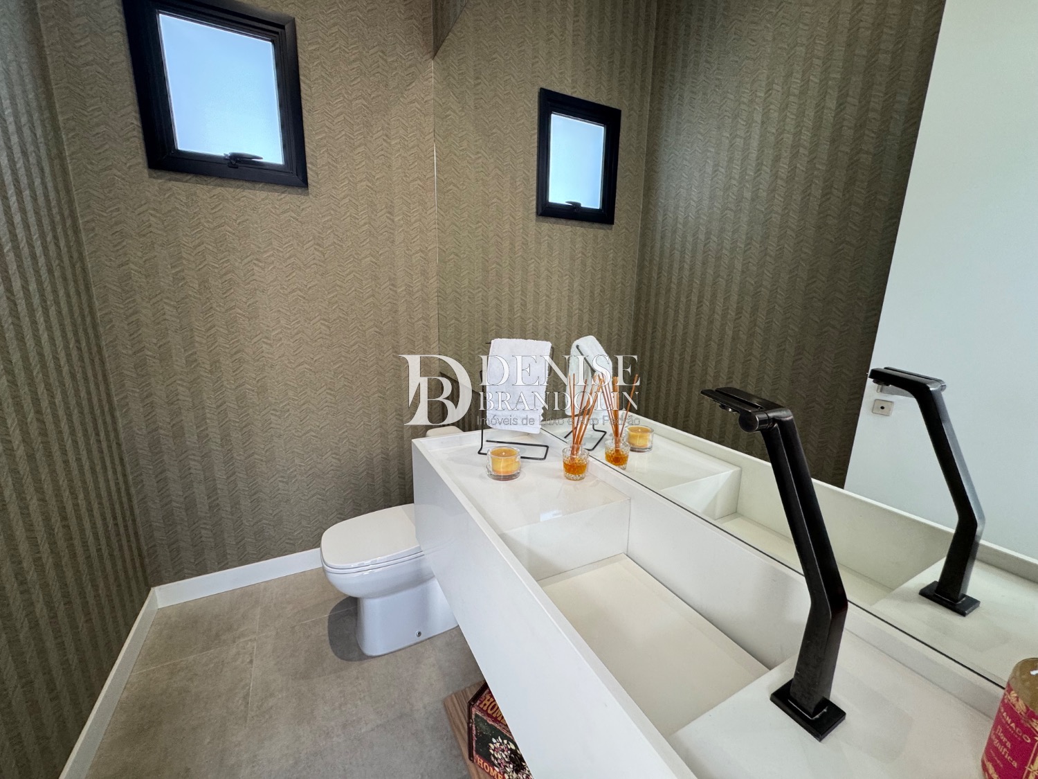 Imóvel oferece integração de todos ambientes com plano aberto na área social, acabamentos diferenciados , possui 4 suítes, sendo 3 em andar privativo (térreo) e 1 suíte no andar de convivência que, atualmente é utilizada como office.