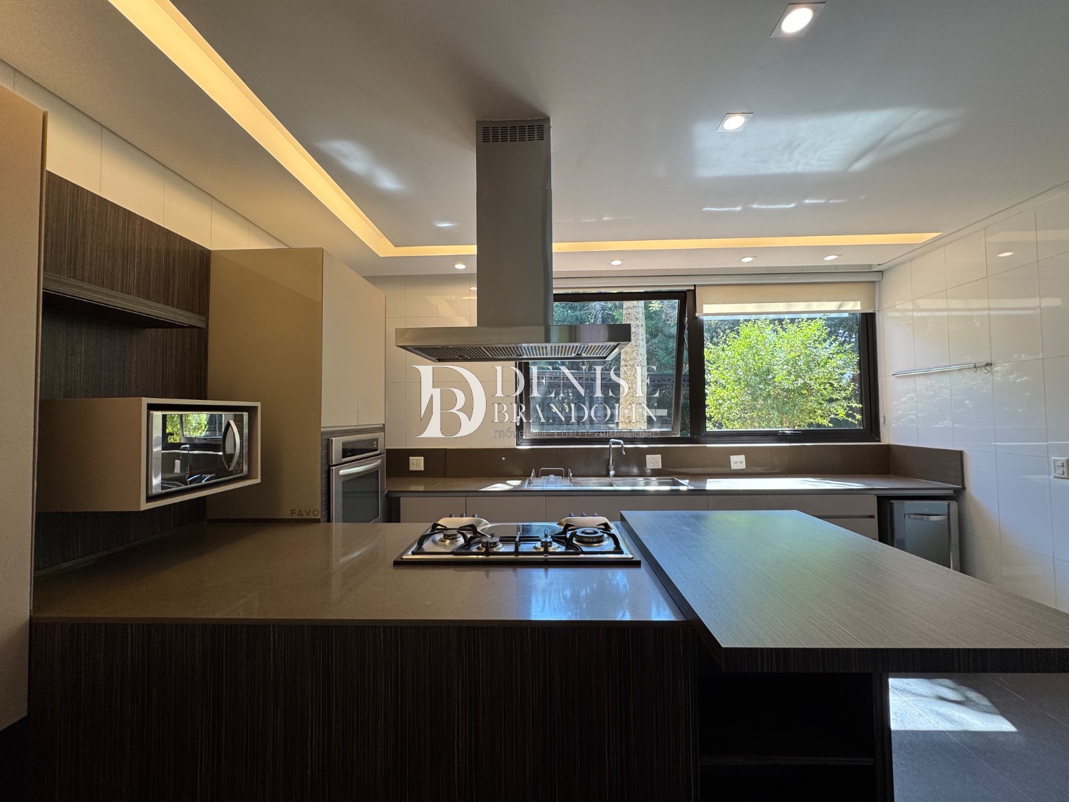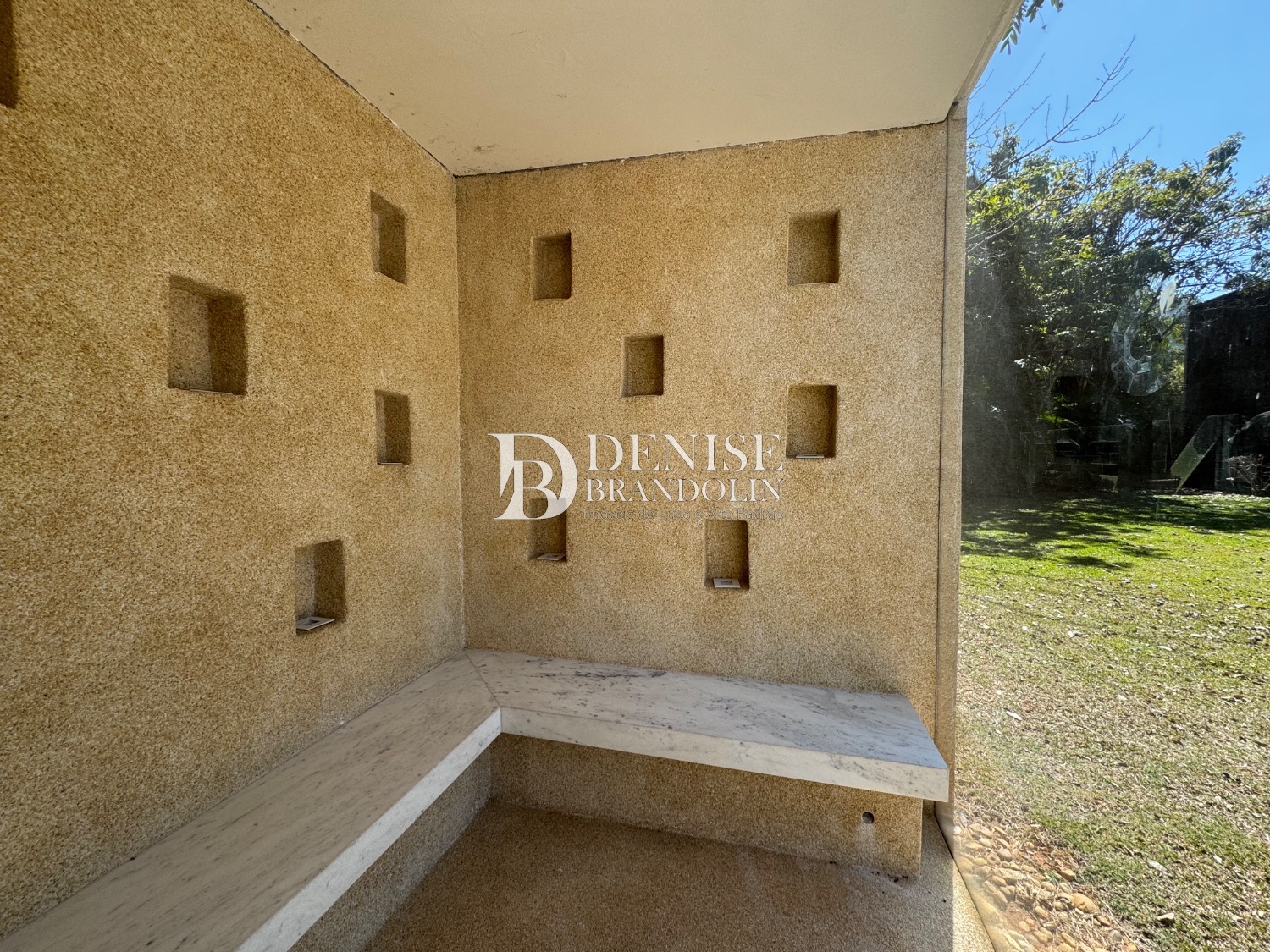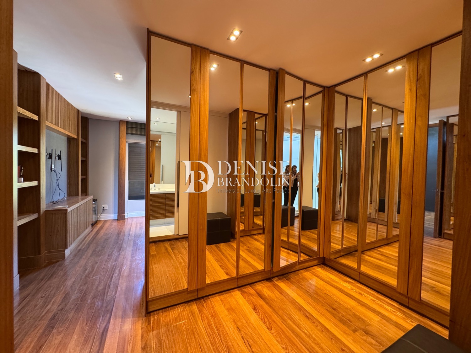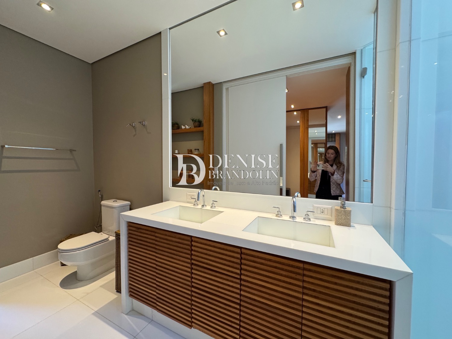 São 5 generosas suítes, living com pé direito duplo, sala de jantar integrada à imensa varanda gourmet, com ilha e mesa de apoio para 8 lugares. Piscina com deck molhado, sauna e extenso jardim já formado, proporcionando total privacidade aos moradores.