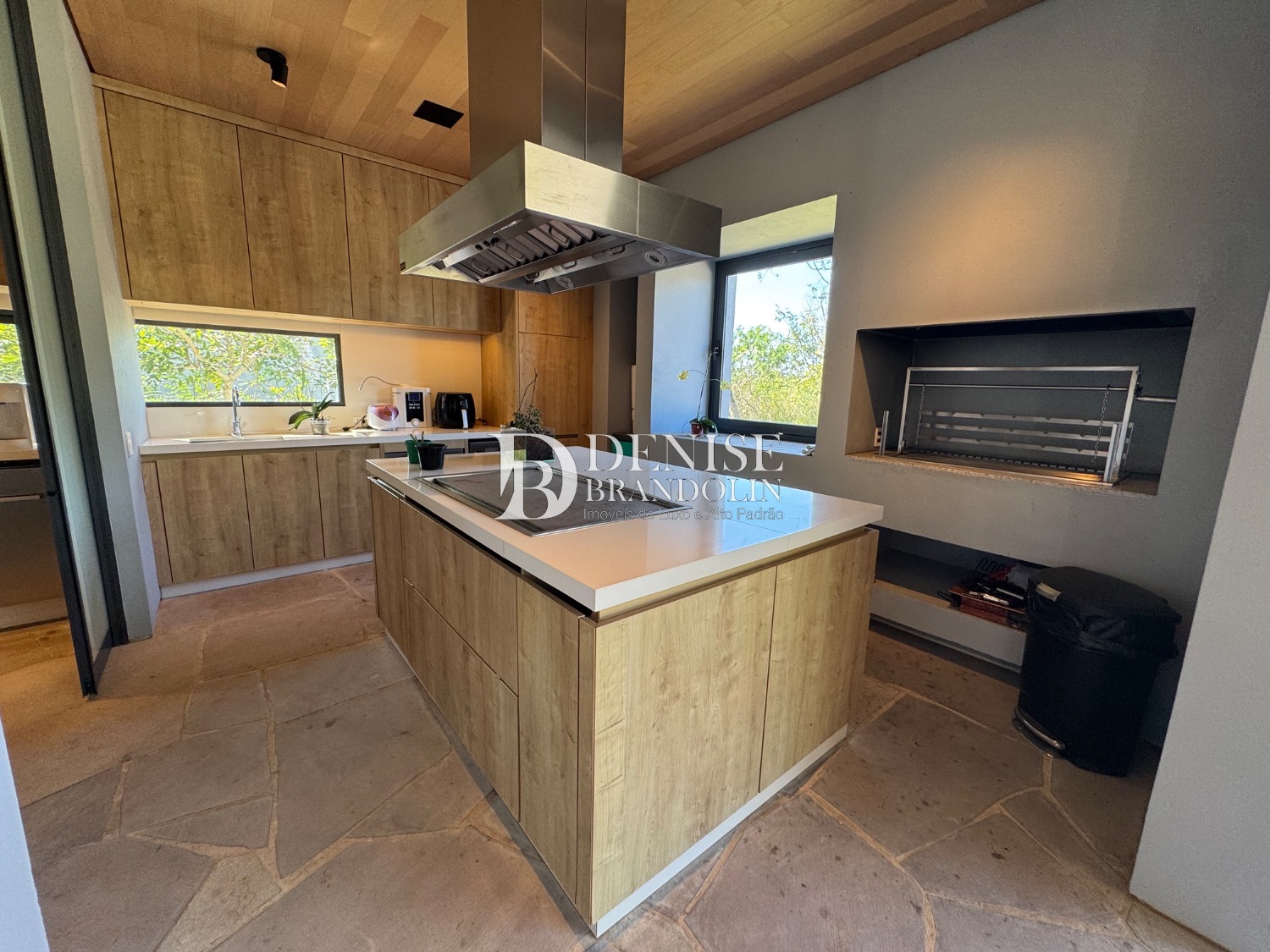 Espaço Gourmet com churrasqueira, piscina, fire place, amplo quintal, rooftop e uma vista espetacular para o campo de golf.