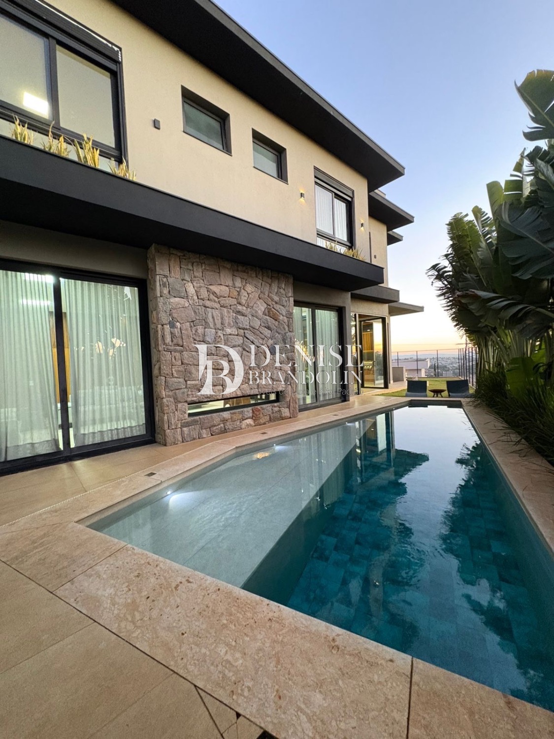 Espaço gourmet com churrasqueira, piscina aquecida e quintal.