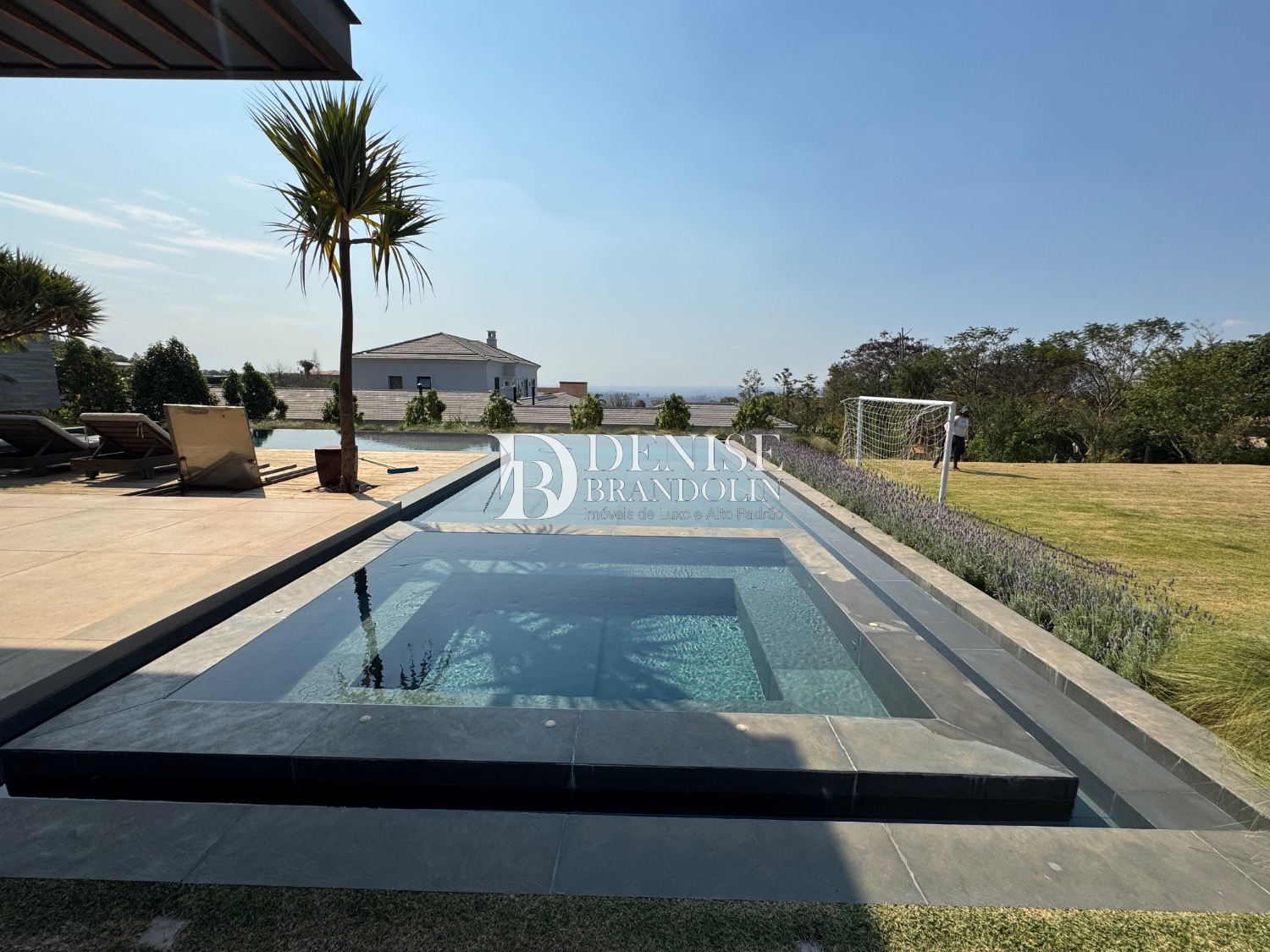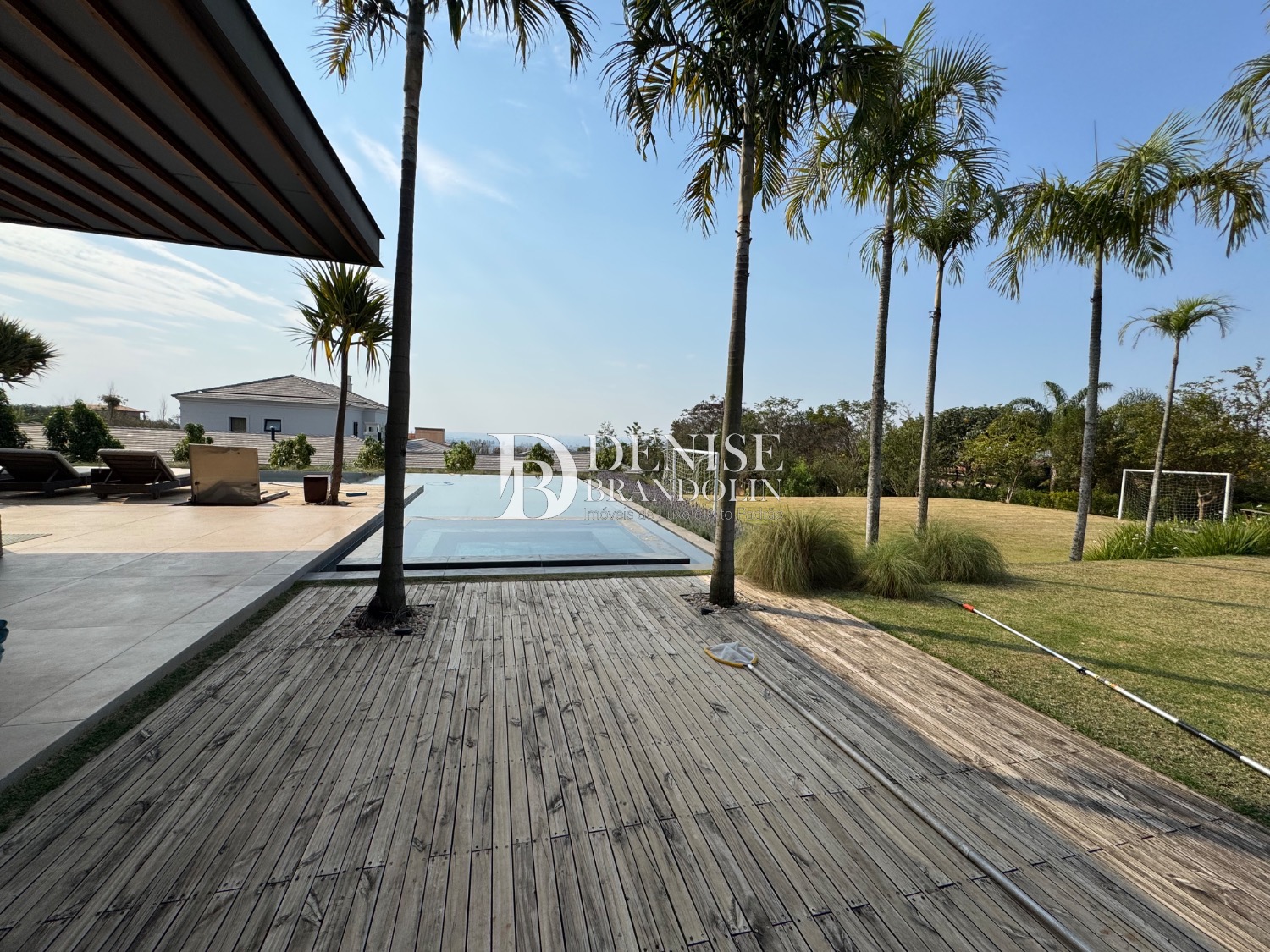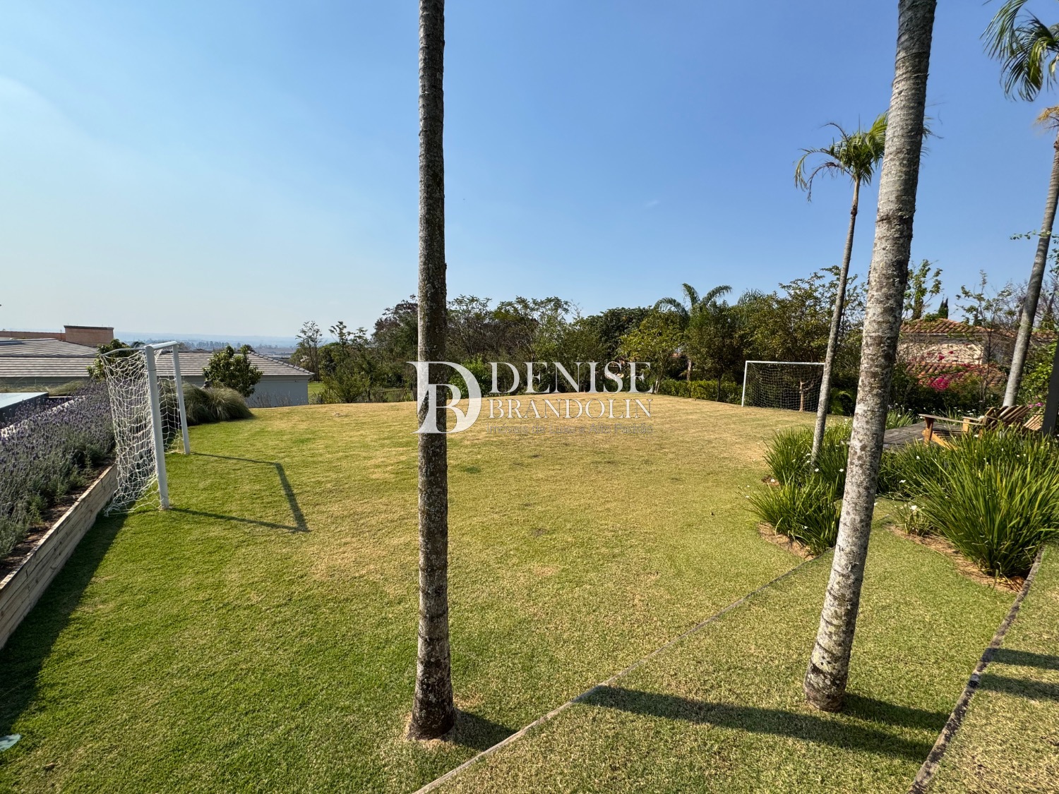 Jardim com pergolado, lareira externa, pomar, horta, campo de futebol e redario.