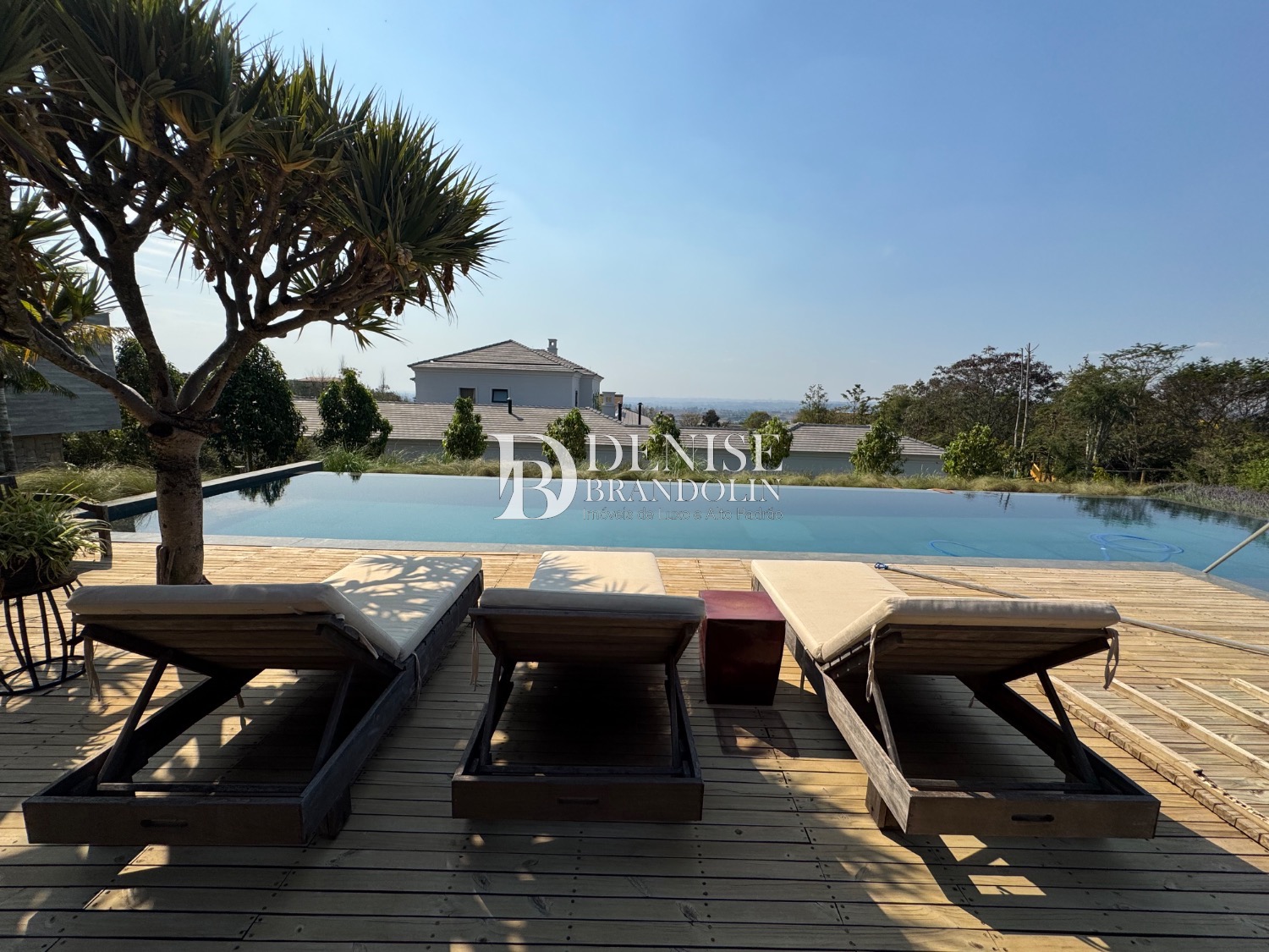 Piscina com raia, prainha e spa, amplo deck de madeira no rooftop com vista espetacular.