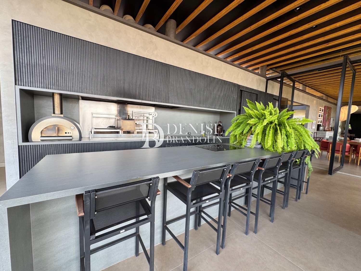 Living para vários ambientes, home cinema, brinquedoteca, cozinha planejada com móveis Ornare, adega embutida de 500 garrafas.