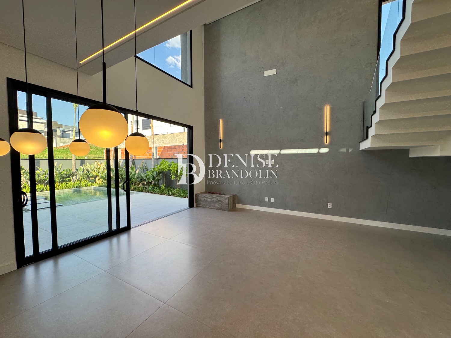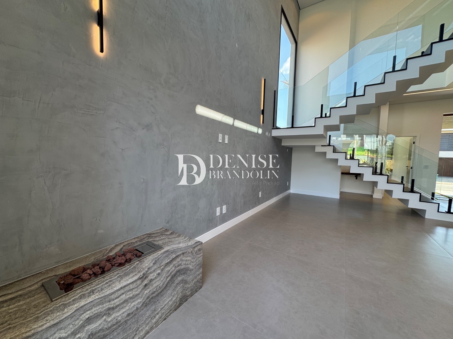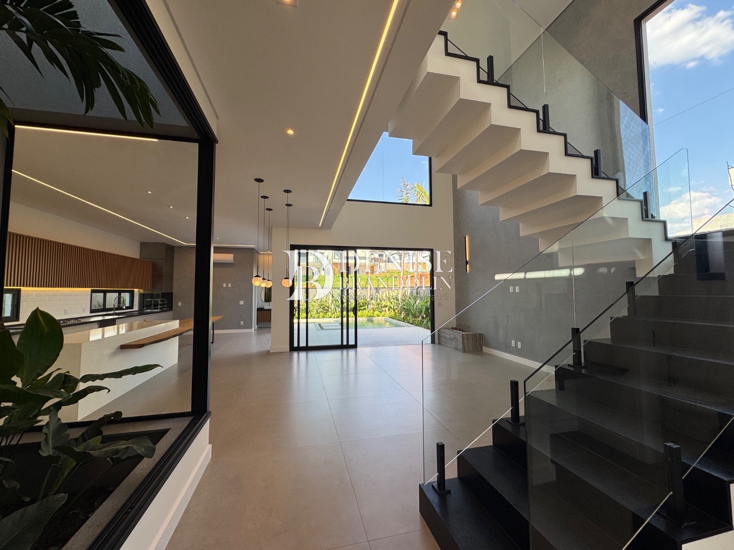 Living para vários ambientes sendo a sala de estar com lareira e pé direito duplo, lavabo, lindo jardim de inverno, escritório reversível (quarta suíte no térreo), cozinha entregue toda equipada com eletrodomésticos e planejados de alta qualidade. Lavanderia planejada.