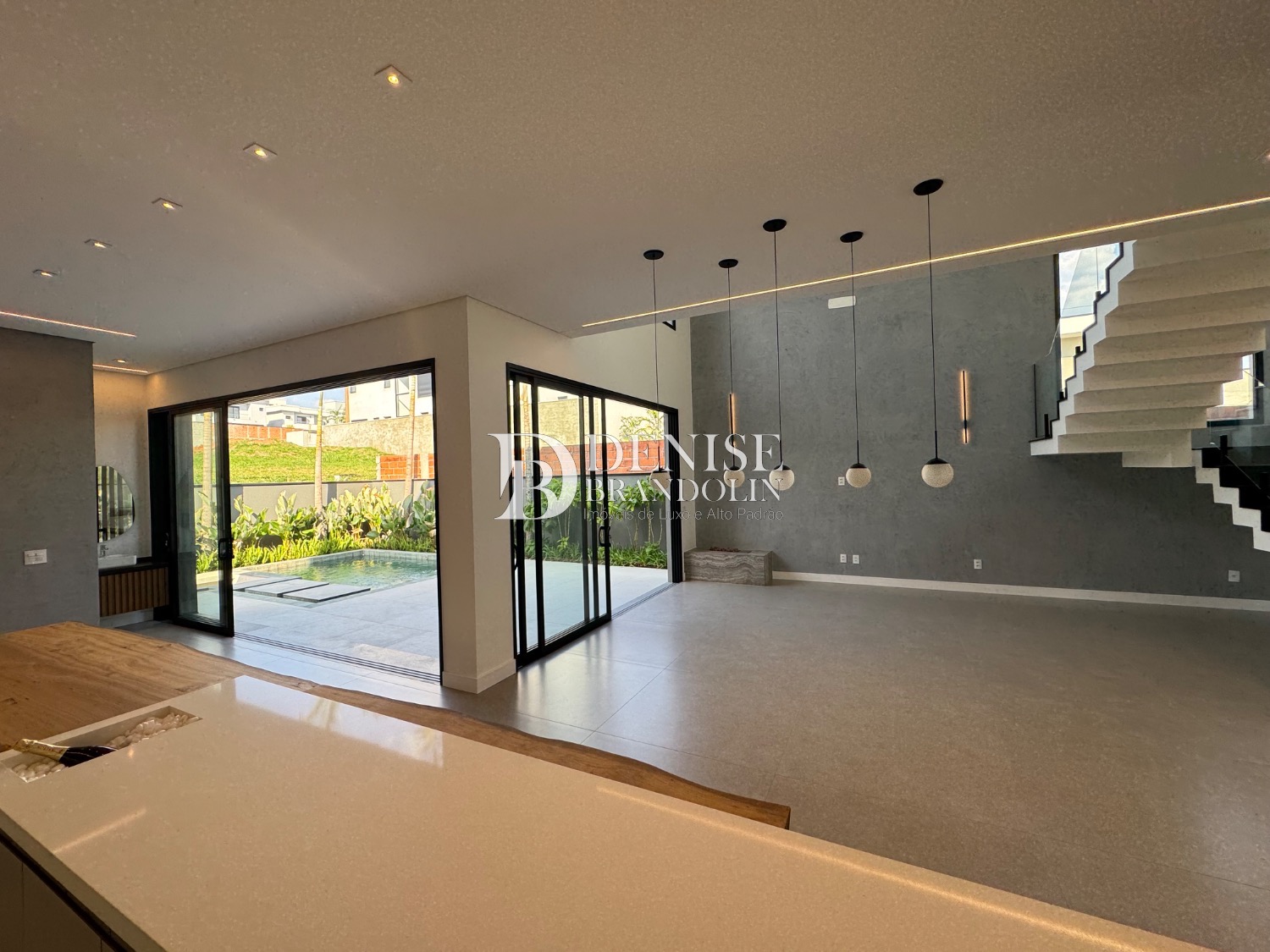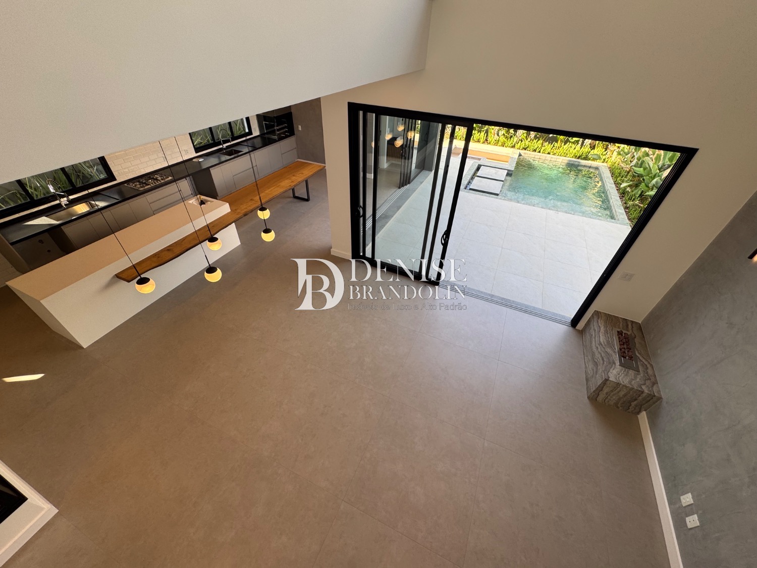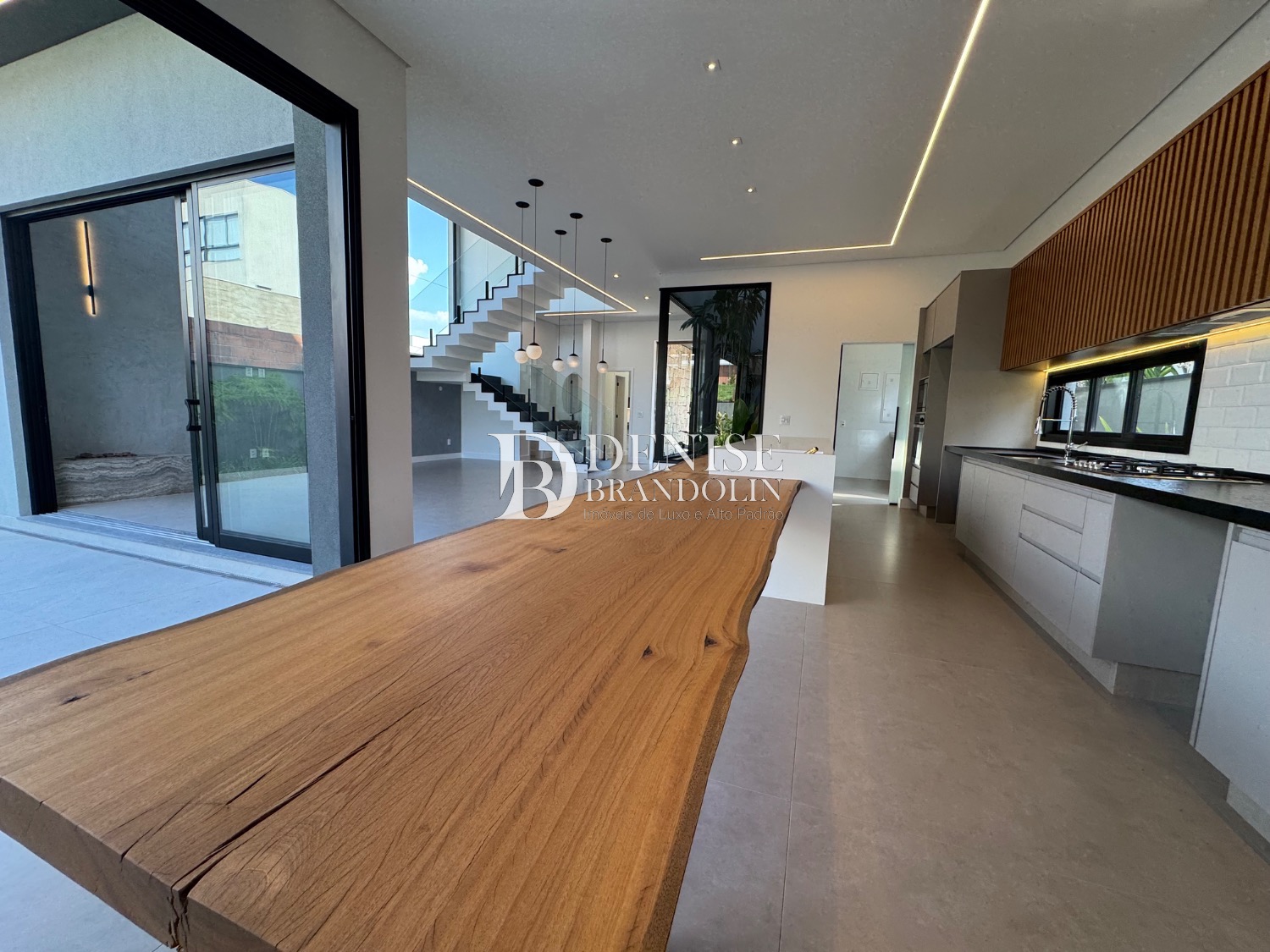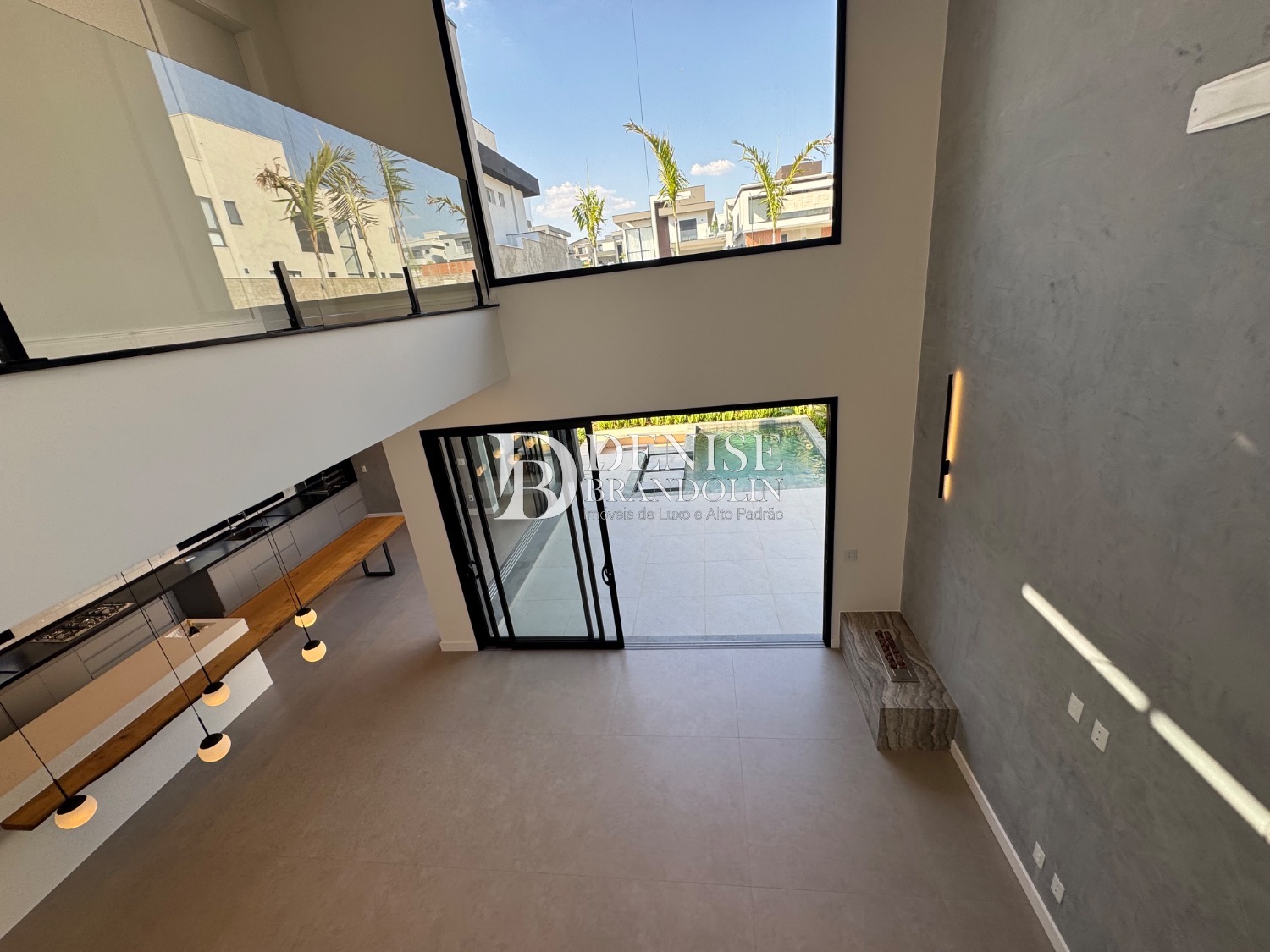 Living para vários ambientes sendo a sala de estar com lareira e pé direito duplo, lavabo, lindo jardim de inverno, escritório reversível (quarta suíte no térreo), cozinha entregue toda equipada com eletrodomésticos e planejados de alta qualidade. Lavanderia planejada.
