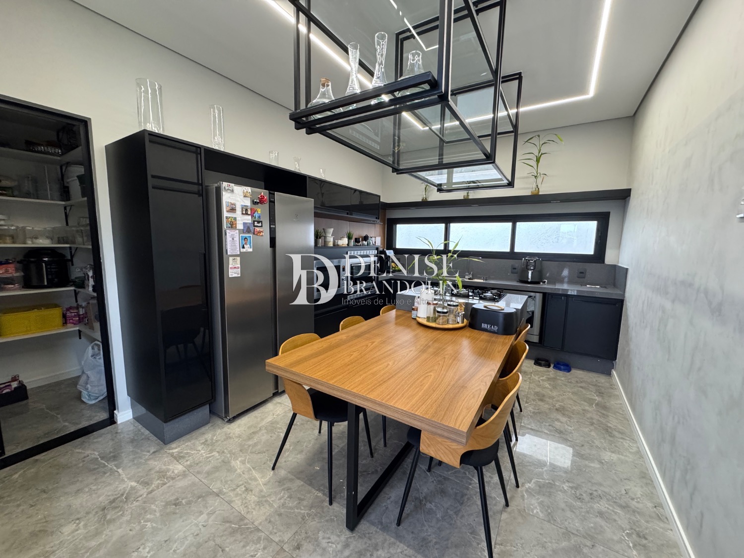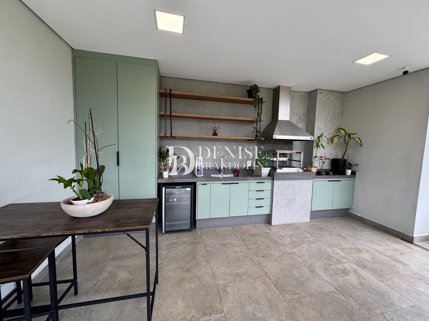 Cozinha planejada, despensa, lavanderia, escritório, sala de TV e lavabo.