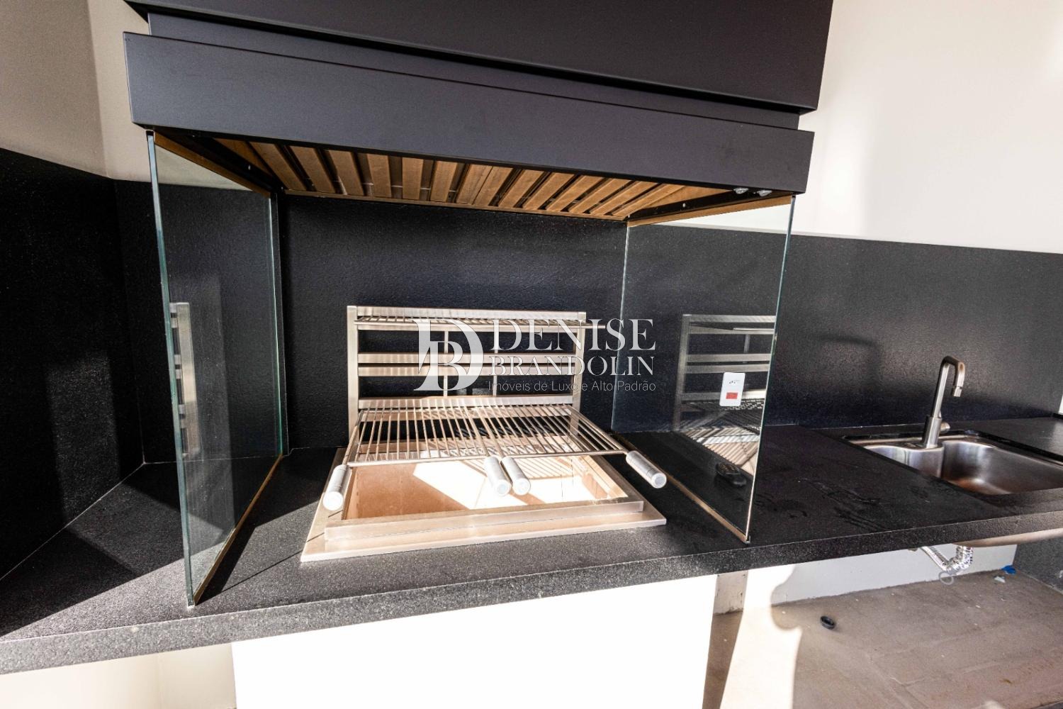 Espaço gourmet com churrasqueira, piscina com borda infinita com uma vista espetacular, quintal e vestiário.