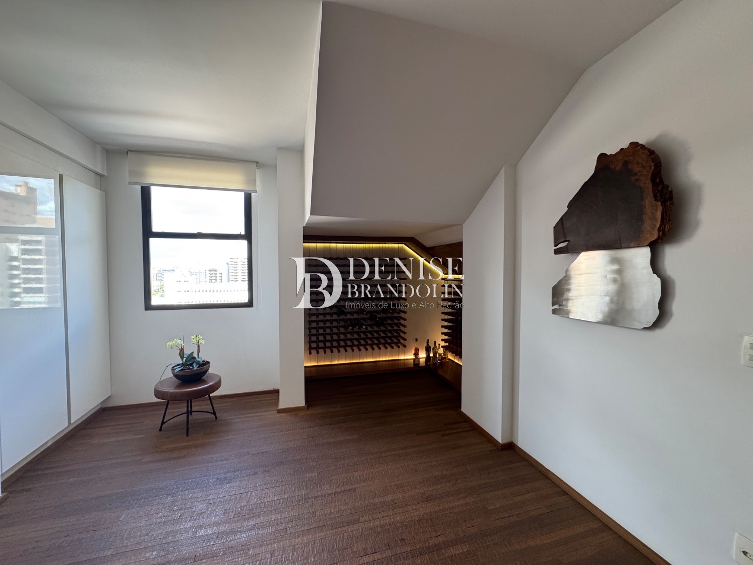Desfrute de vistas cativantes da cidade a partir da exclusiva cobertura, criando um cenário deslumbrante para suas experiências diárias. Adega e lareira: Delicie-se com o luxo de uma adega, ideal para apreciadores de vinho, e desfrute de noites aconchegantes em torno da lareira, criando uma atmosfera calorosa e acolhedora.