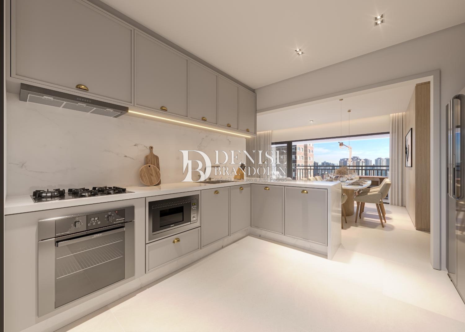 apartamento, além de um living com ampla vista para a varanda gourmet. 3 suítes 2 vagas de garagem, sendo uma com infraestrutura para carro elétrico. Varanda gourmet com churrasqueira a carvão. Sala de estar e jantar integrados. Duas entradas: serviço e privativo. Elevador social com senha e hall privativo. Cozinha digna de chefes da alta gastronomia. Um espaço onde histórias são compartilhadas em meio a aromas e sabores. A cozinha possui ponto de água para geladeira e filtro de água, torneira monocomando, e infraestrutura para instalação de exaustor para coifa. Suíte master com espaço para closet e entregue com persianas do tipo blackout motorizadas.