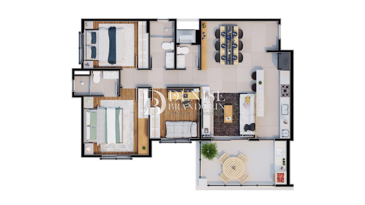 Apartamentos de 91 a 165 m², com 3 dormitórios, sendo 01 suíte com varanda gourmet com churrasqueira. 02 vagas de garagem com opção compra da 3° vaga e 2 elevadores por Torre.